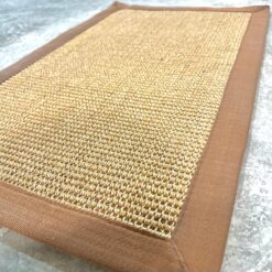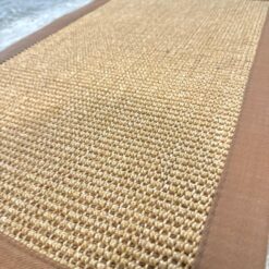 Alfombra de hilo sisal con borde de tela.