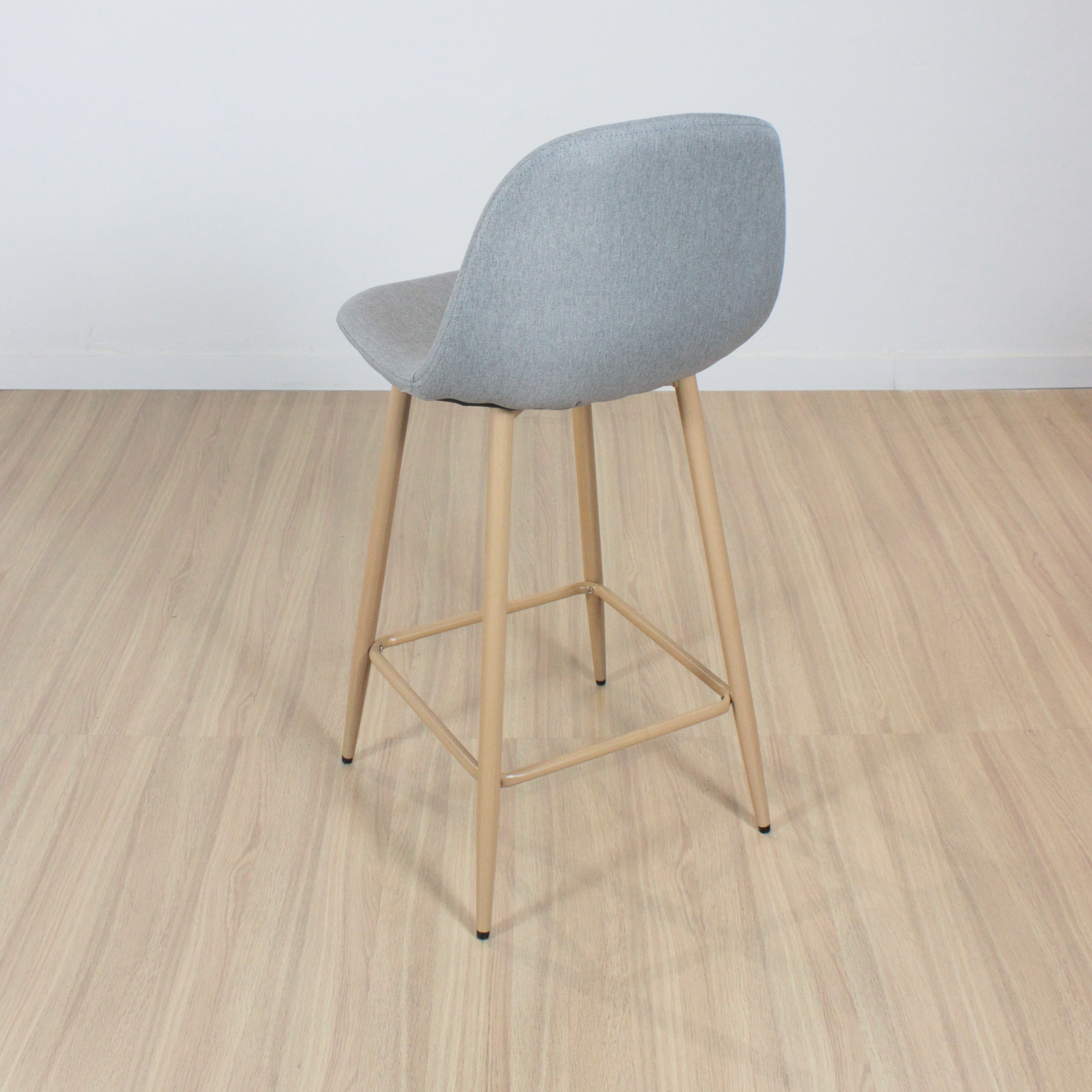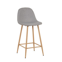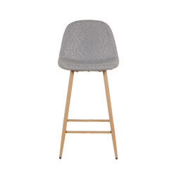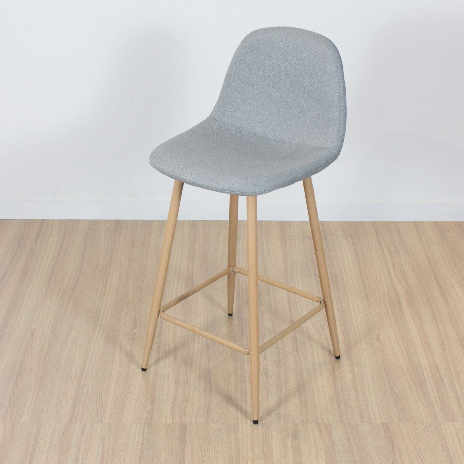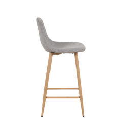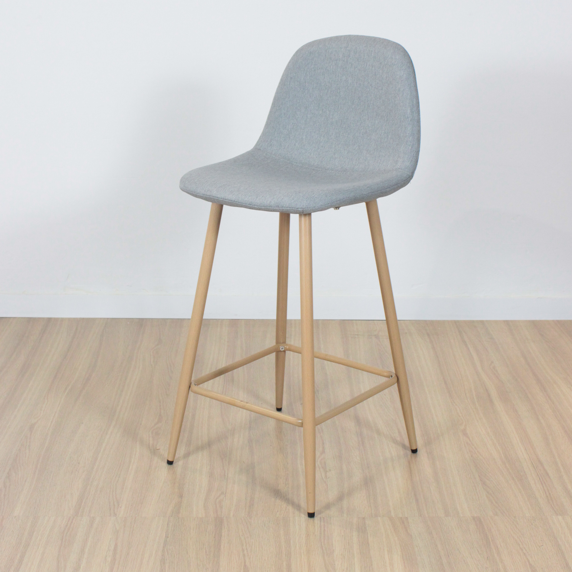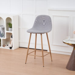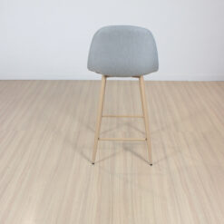 Banqueta de patas metálicas pintadas con pintura epoxi simil madera con respaldo tapizado en lino con relleno acolchado . Con regatones antideslizantes. Super resistentes. sencilla de armar. incluye lo necesario para hacerlo.