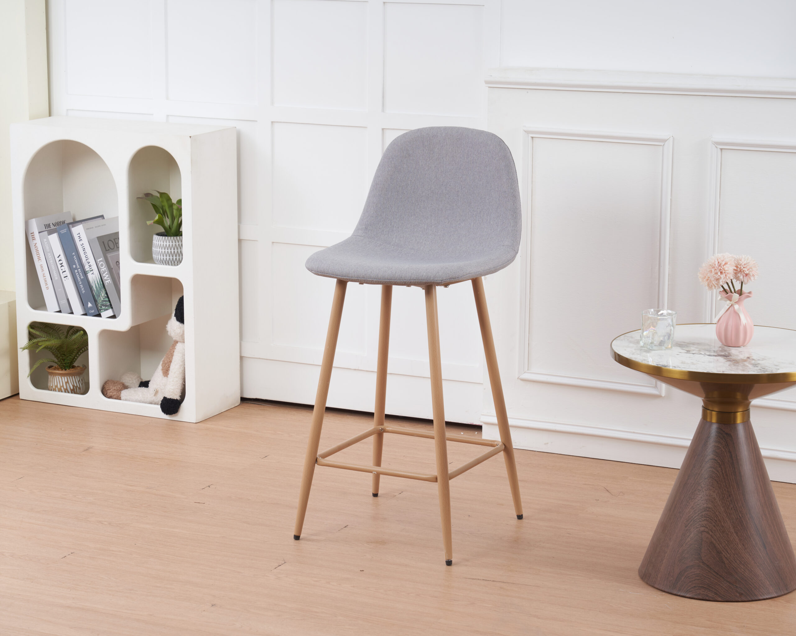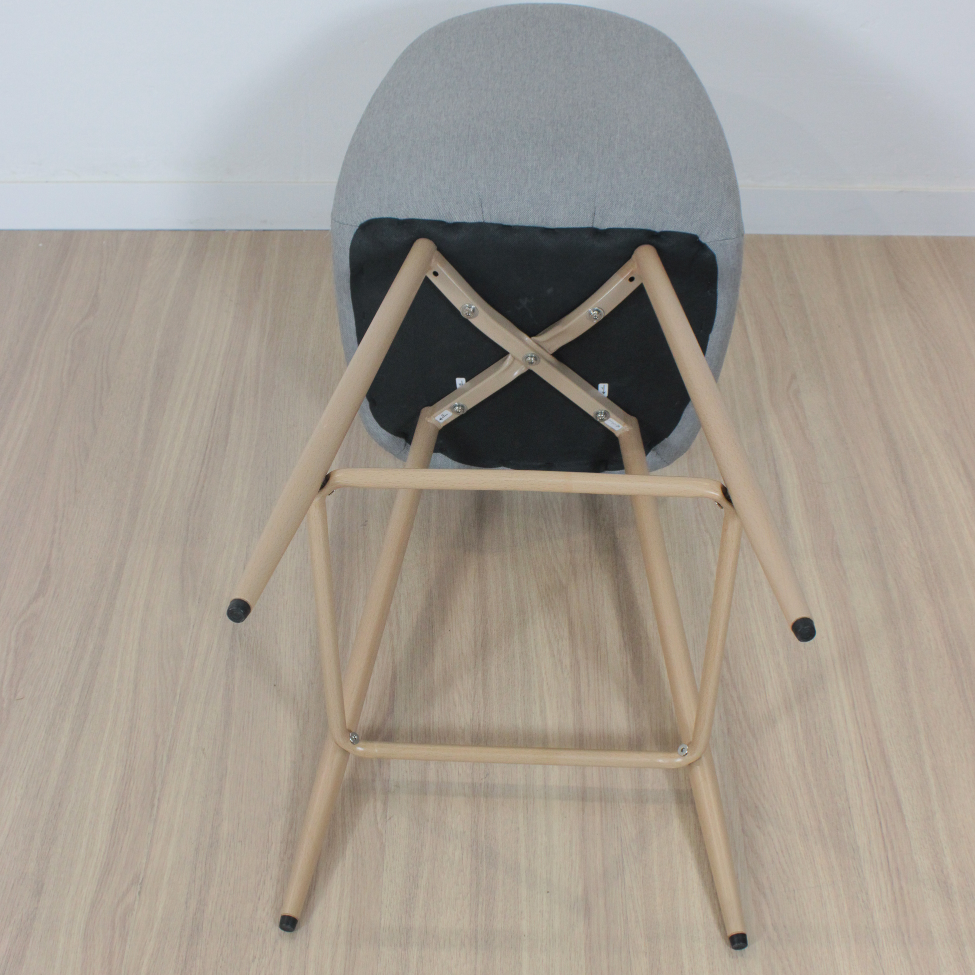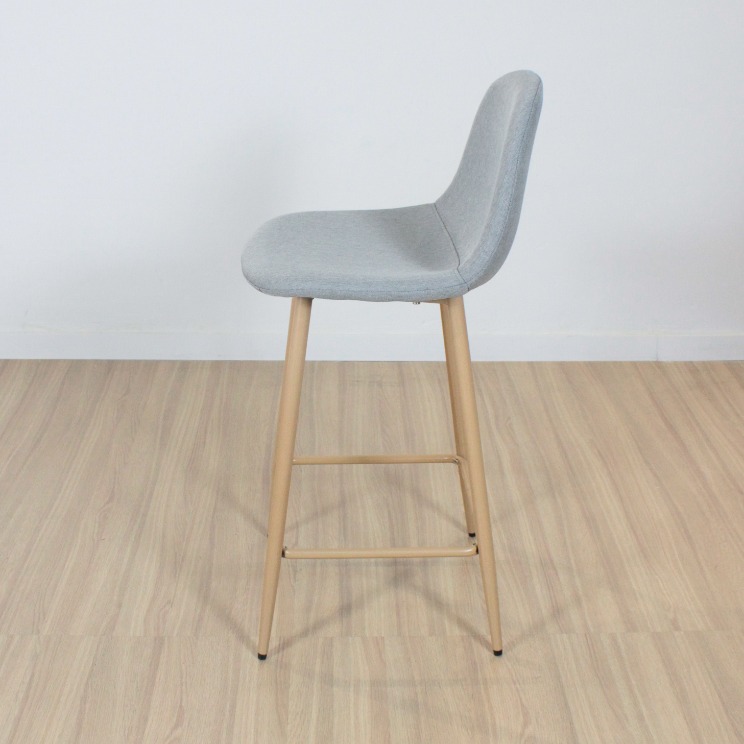 Banqueta de patas metálicas pintadas con pintura epoxi simil madera con respaldo tapizado en lino con relleno acolchado . Con regatones antideslizantes. Super resistentes. sencilla de armar. incluye lo necesario para hacerlo.