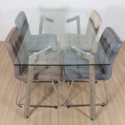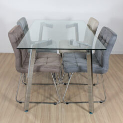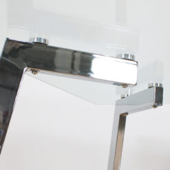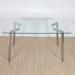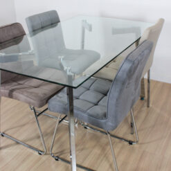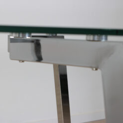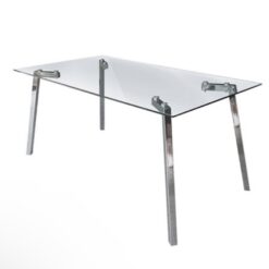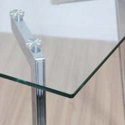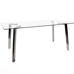 Mesa Cadiz rectangular de diseño hecha en tapa vidrio templado de 10 mm de espesor, patas cromadas.
