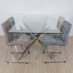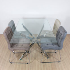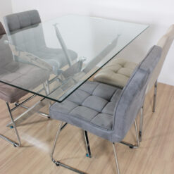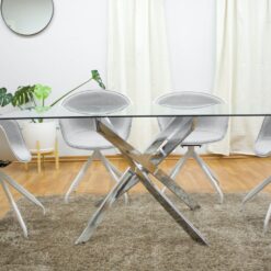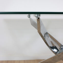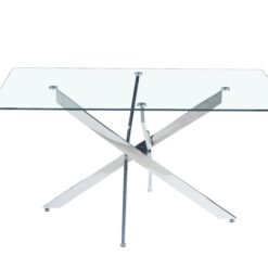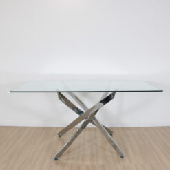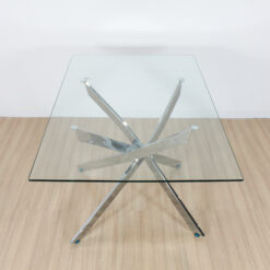 Mesa rectangular de diseño. vidrio. patas cromadas