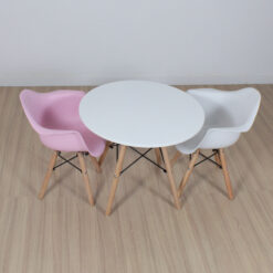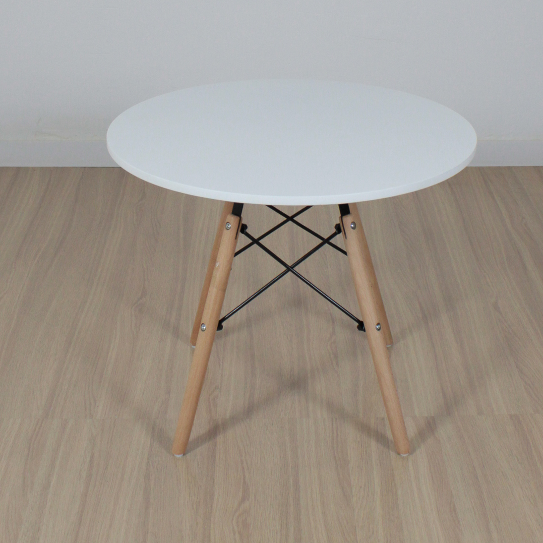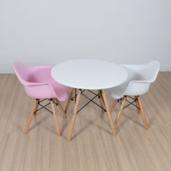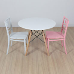 Mesa para niños o ratona de tapa de madera (MDF) laqueada. patas de madera y estructura metálica cromada Negro.