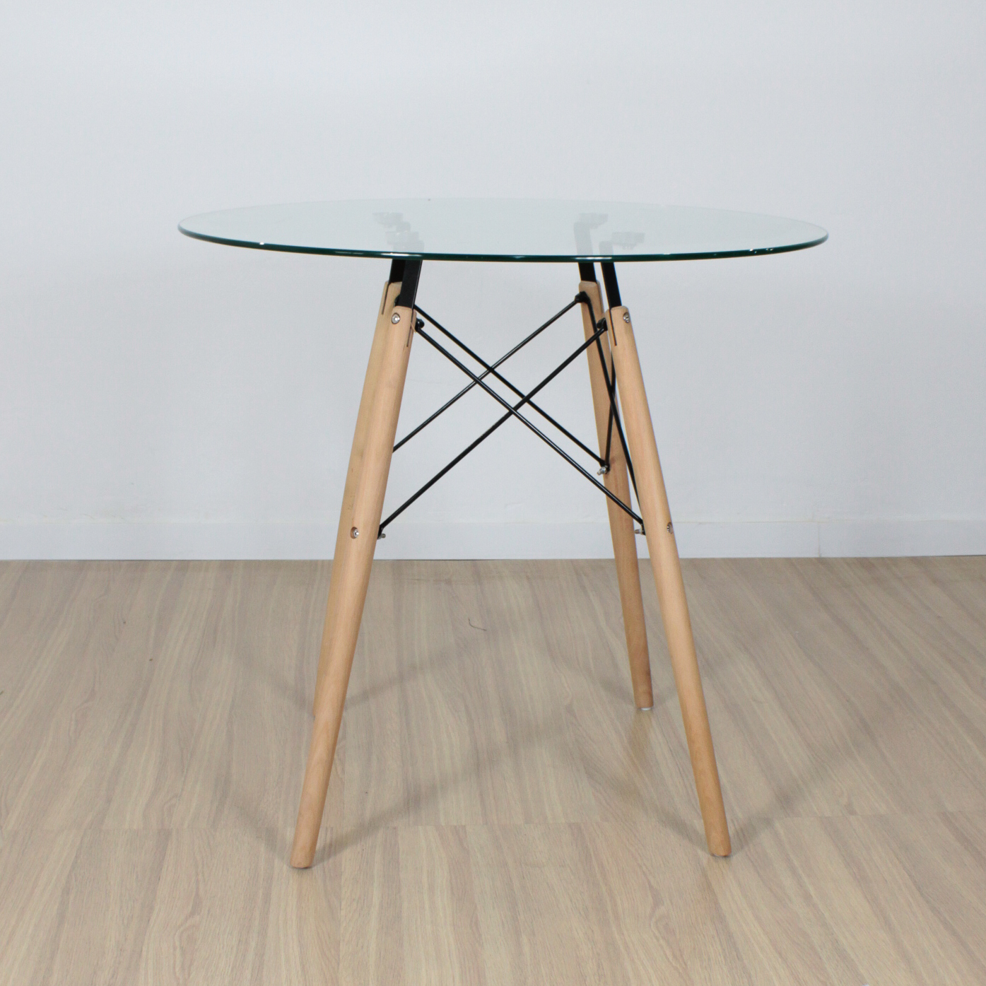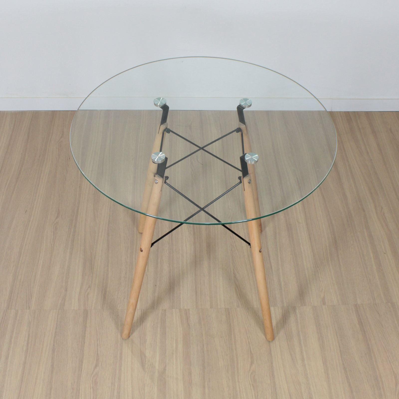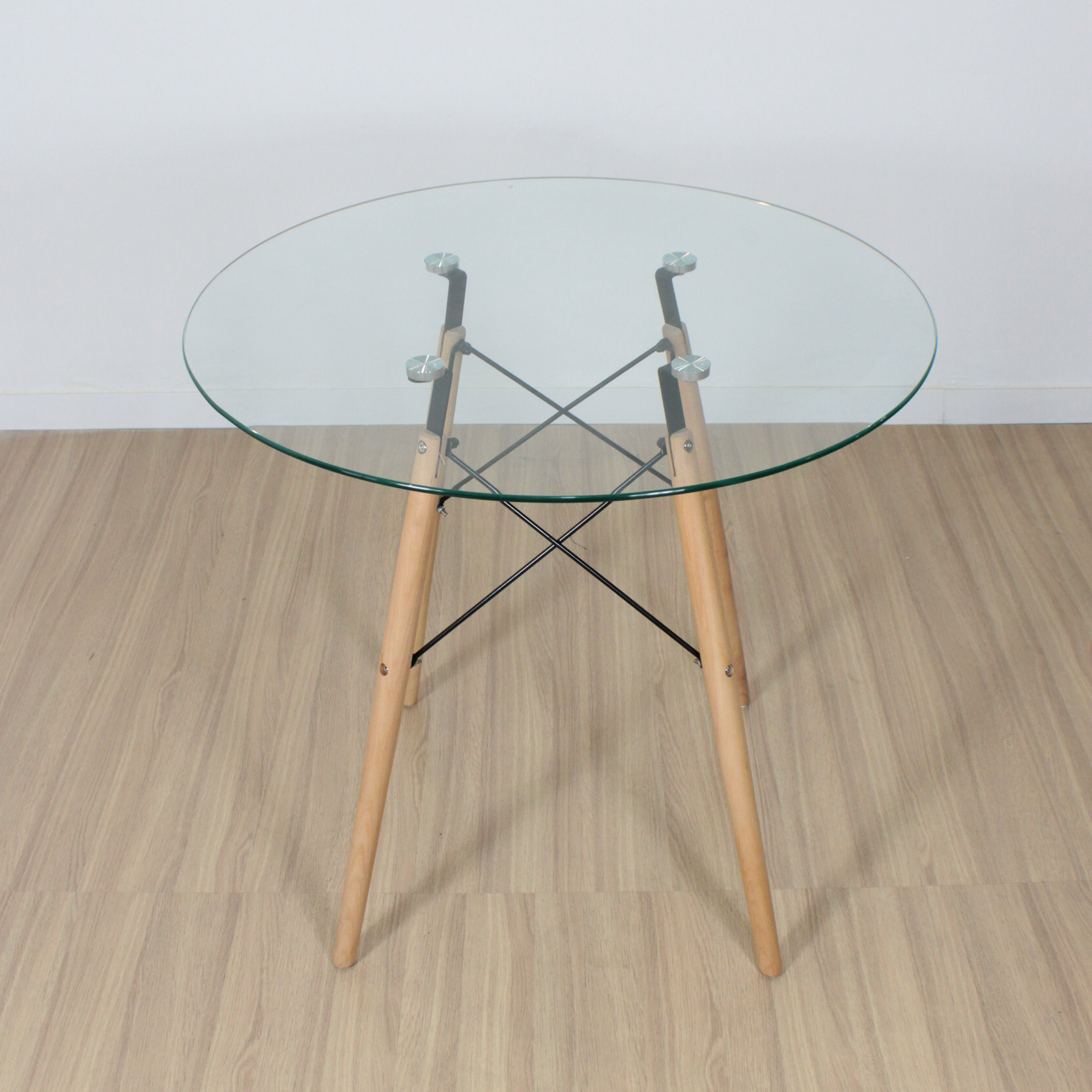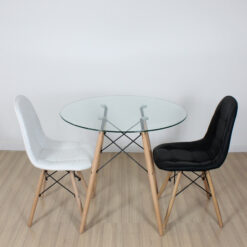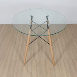 MESA EAMES REDONDA 80CM VIDRIO (PATA MADERA)