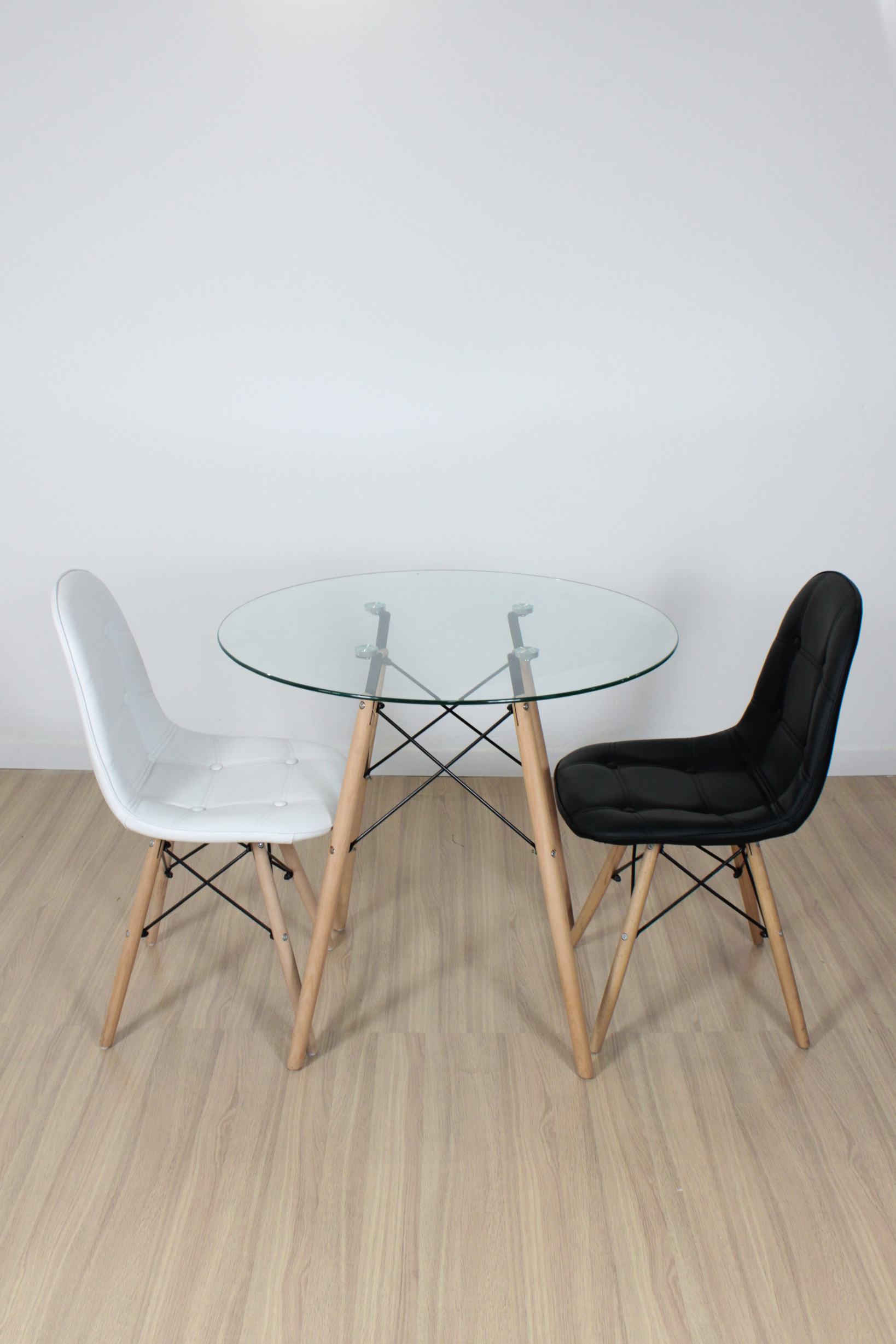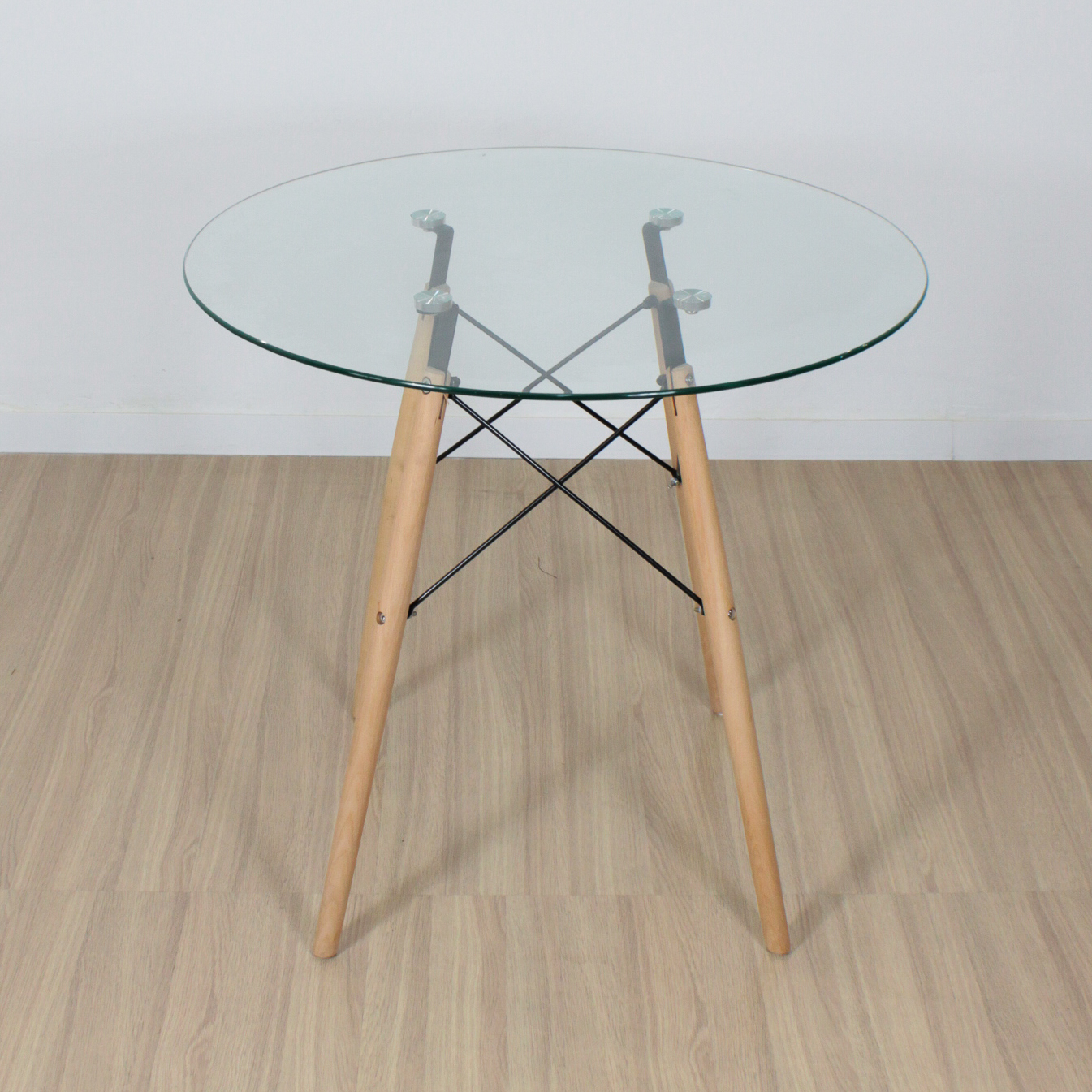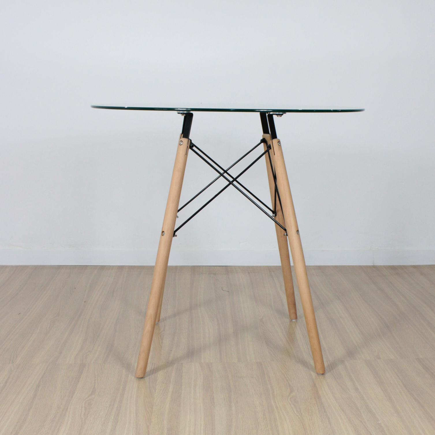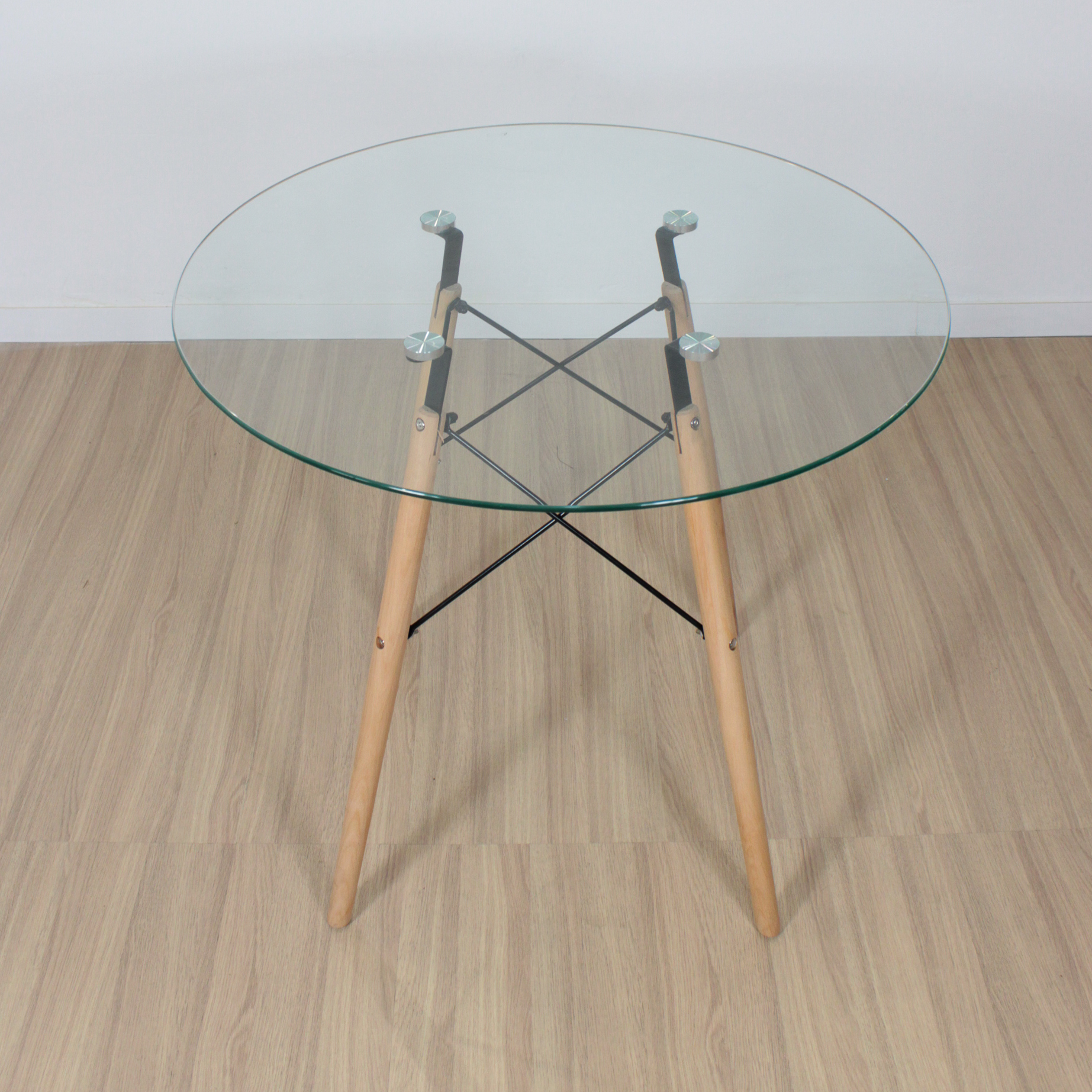 MESA EAMES REDONDA 80CM VIDRIO (PATA MADERA)