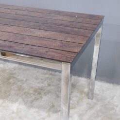 Mesa rectangular de diseño. vidrio. film simil madera y patas cromadas