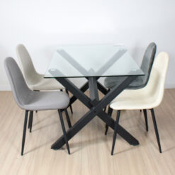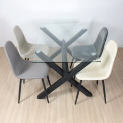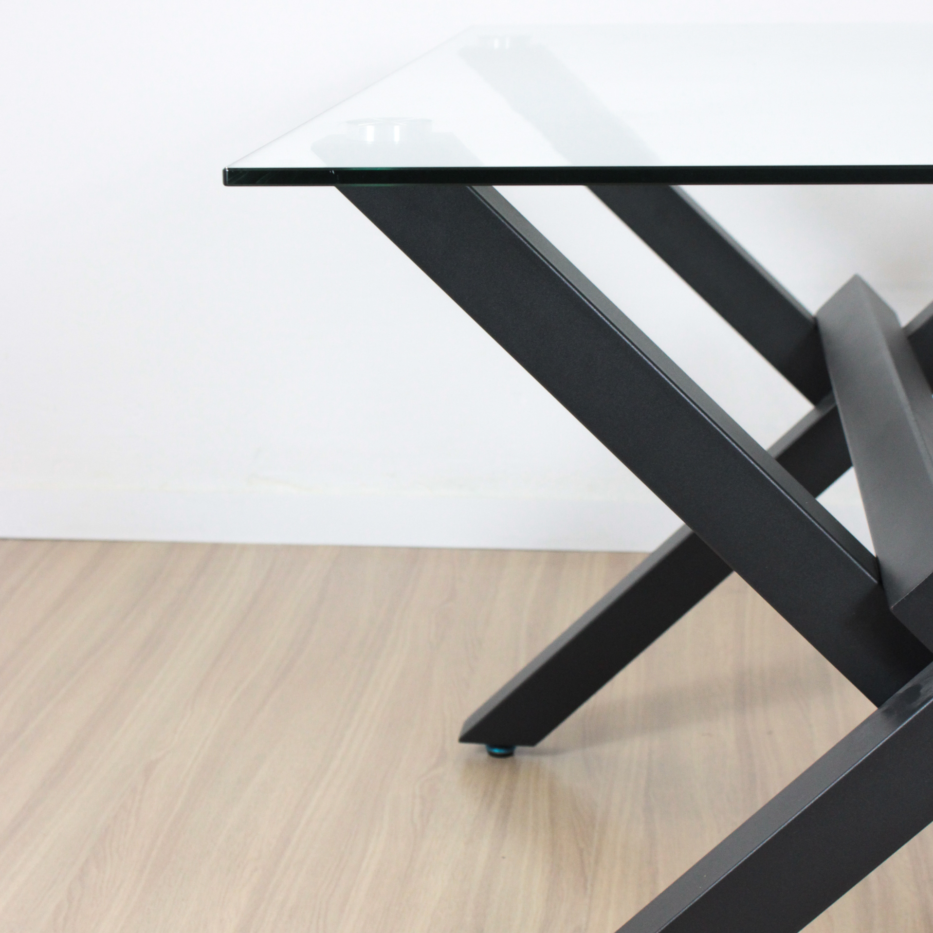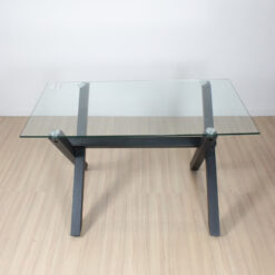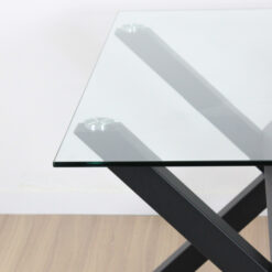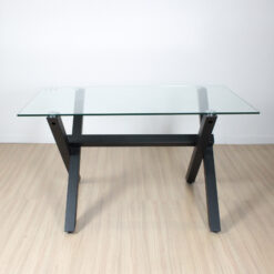 Mesa Margarita rectangular de diseño hecha en tapa vidrio de 10 mm de espesor . con patas metálicas negra y topes reguladores antideslizantes. Articulo importado de calidad premium. Producto para armar. Incluye todo lo necesario para su fácil armado .