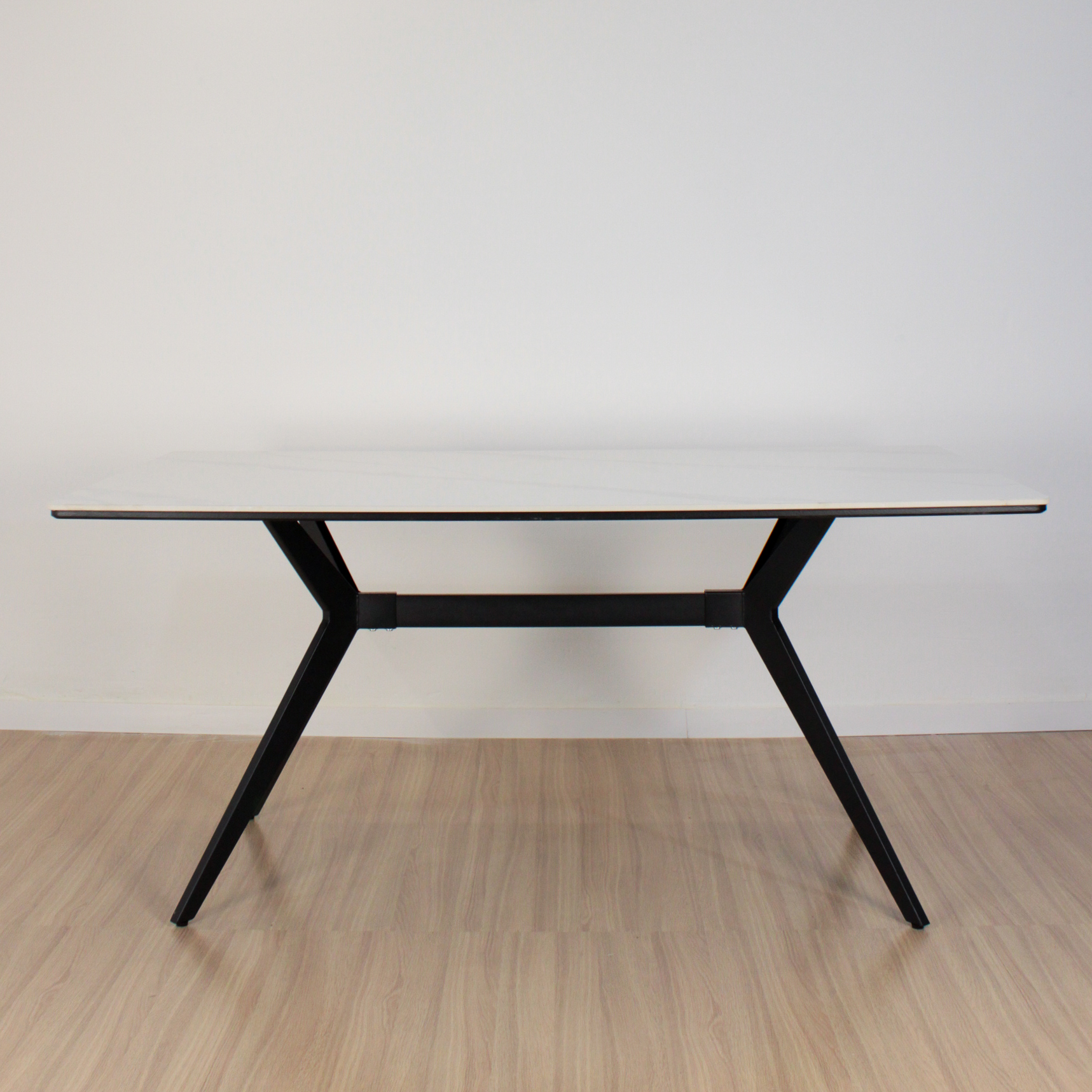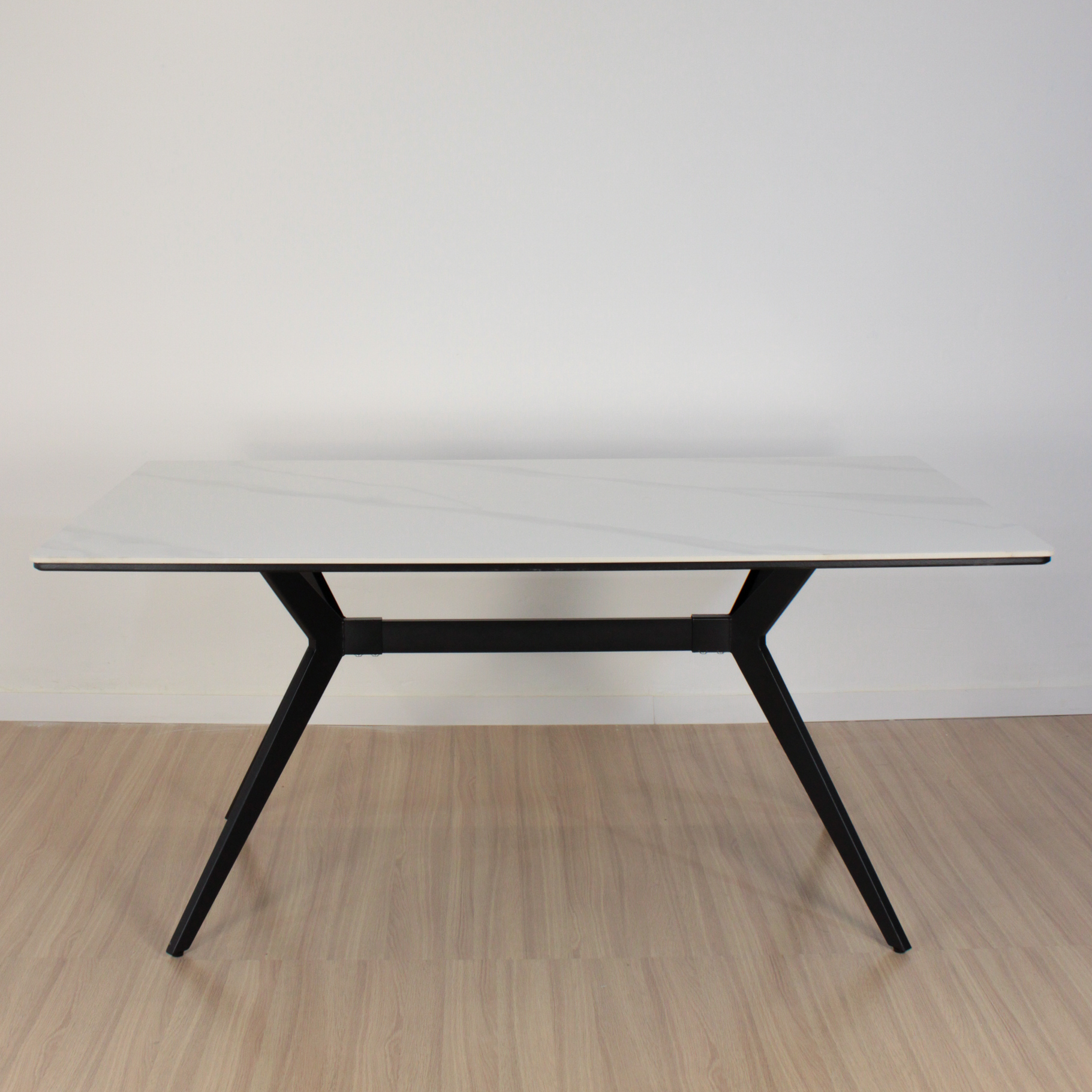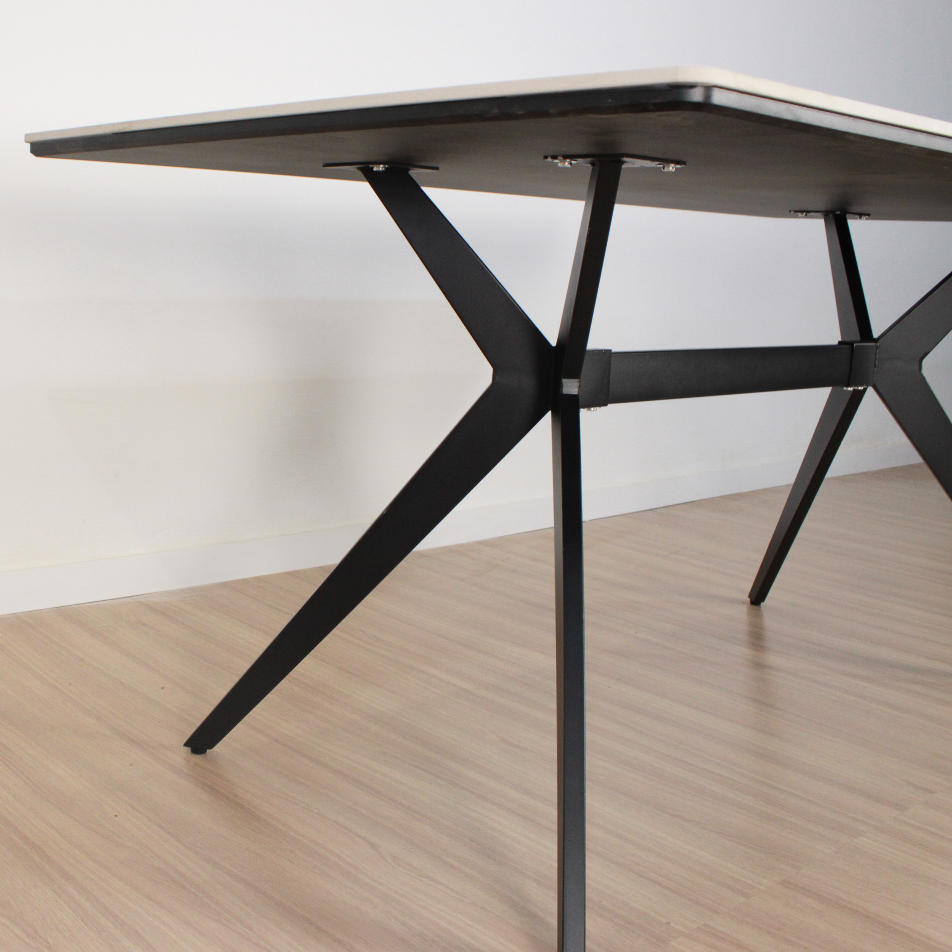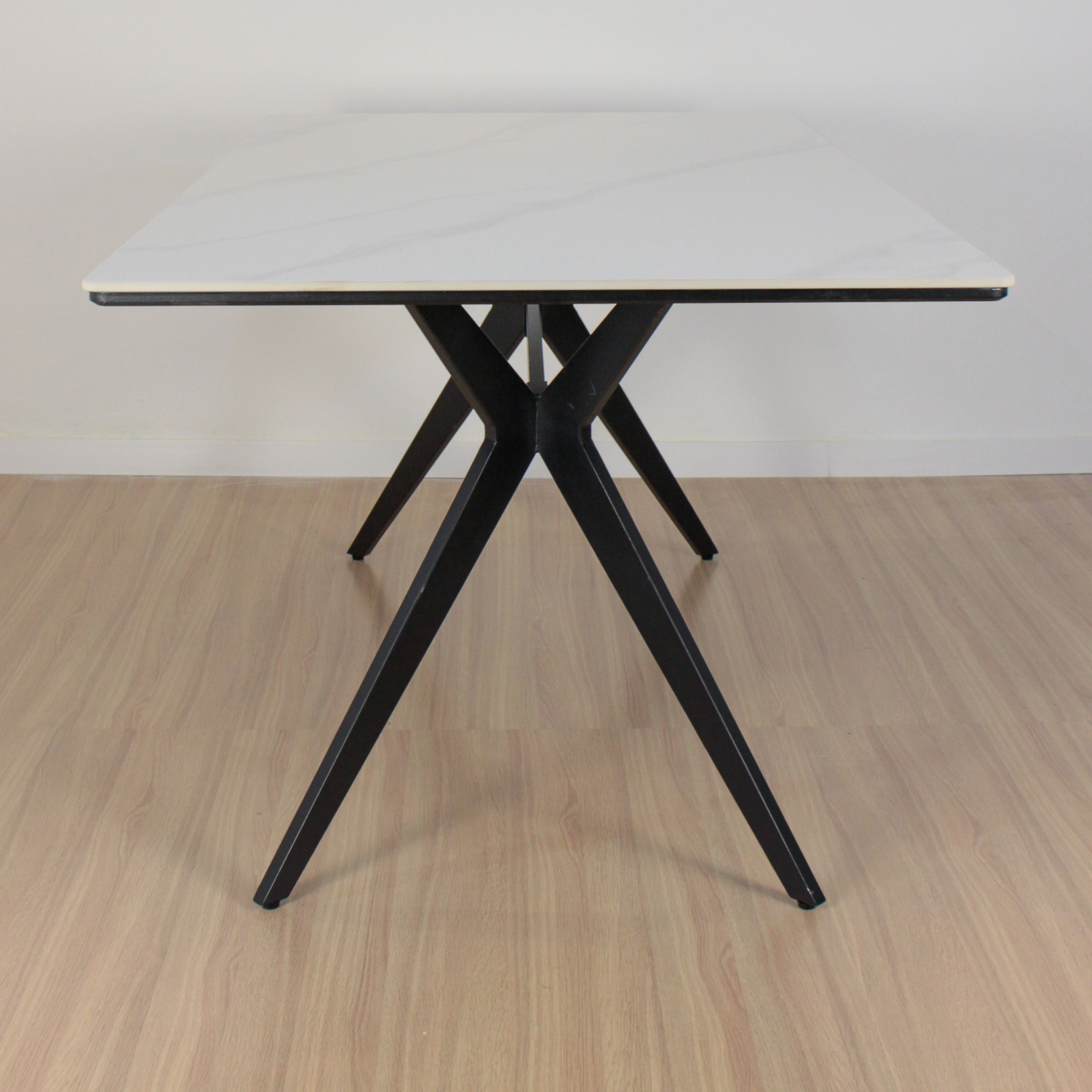 Mesa Oslo rectangular de diseño, de Piedra Sinterizada (Neolith) y patas metálicas negras . Increíble mesa importada de calidad premium.