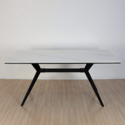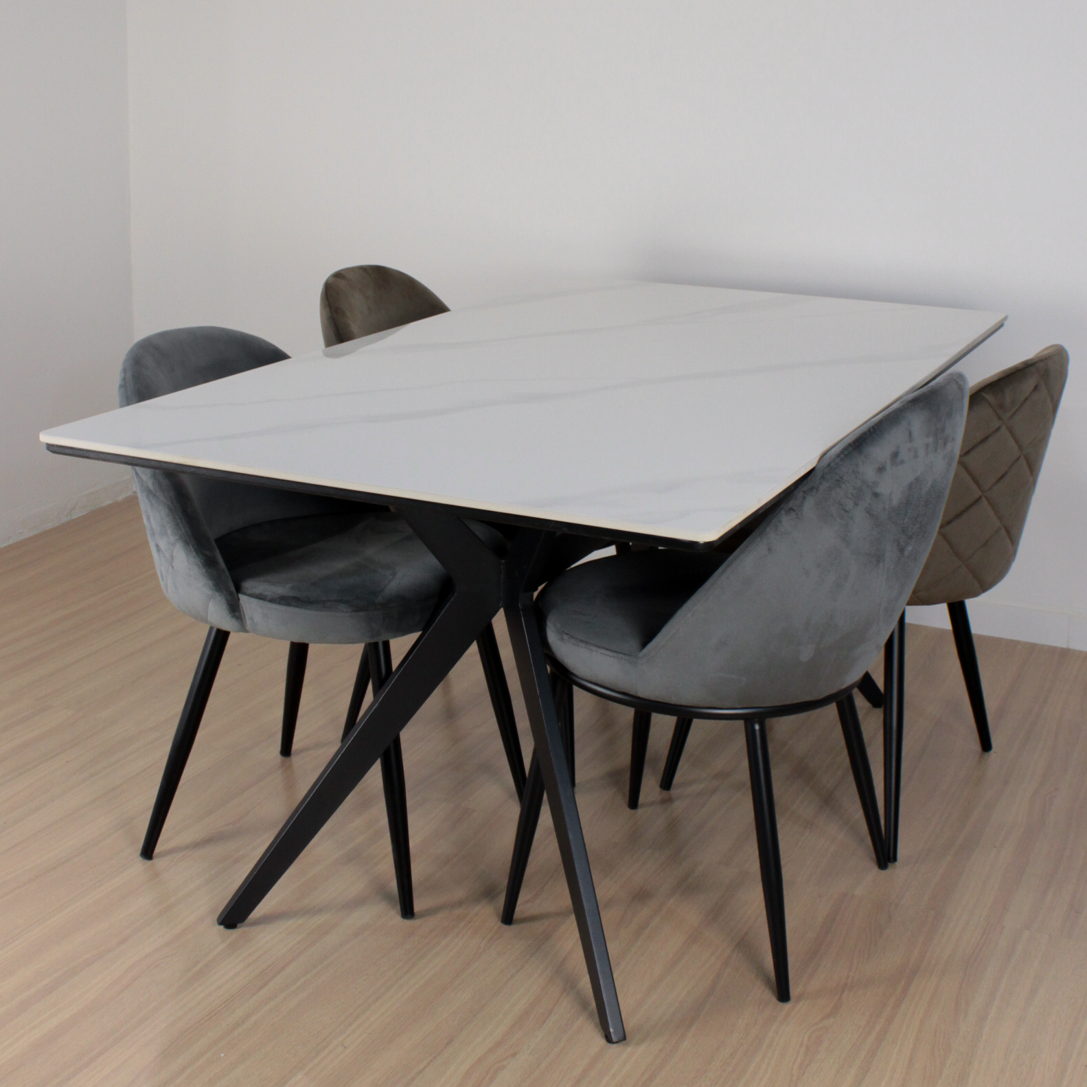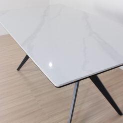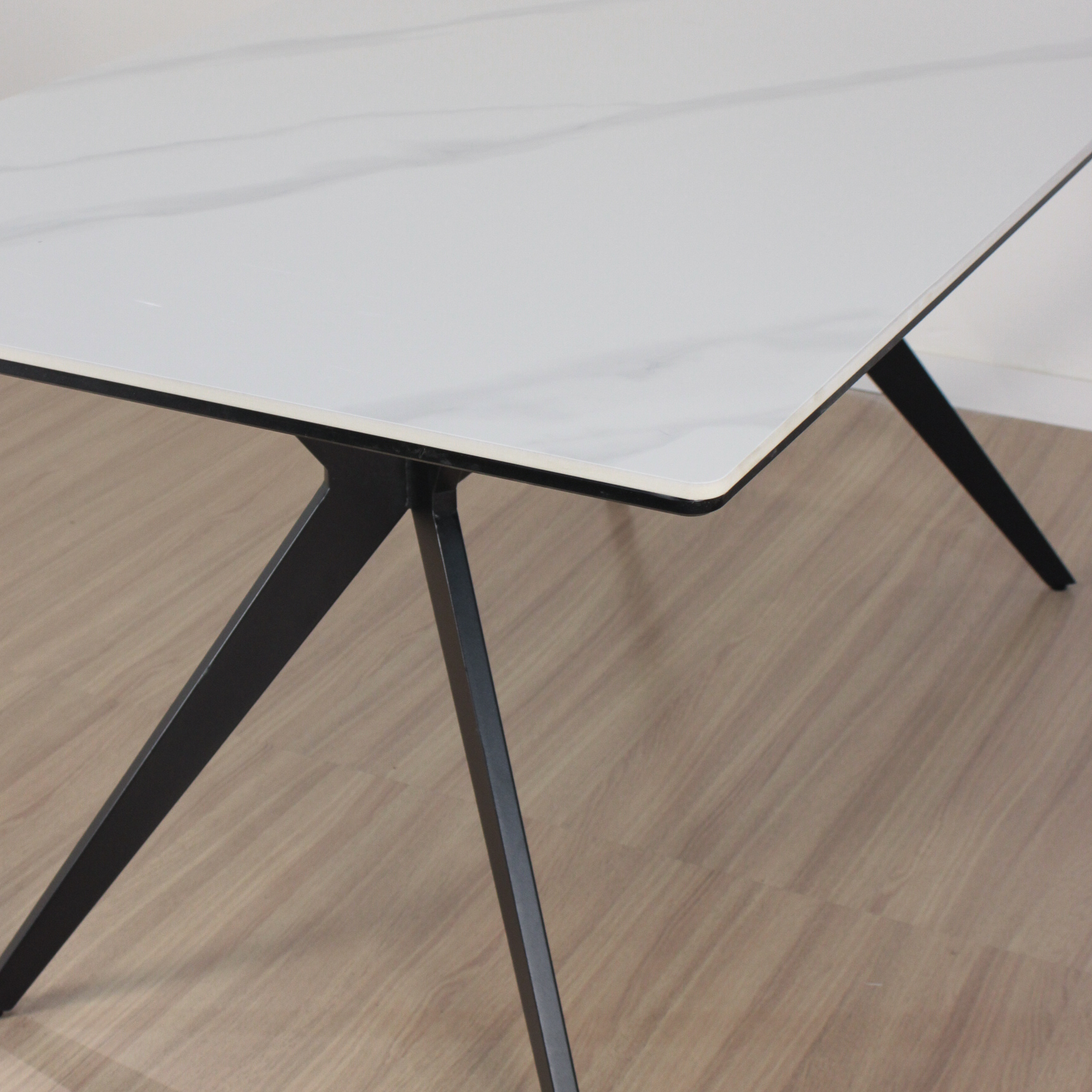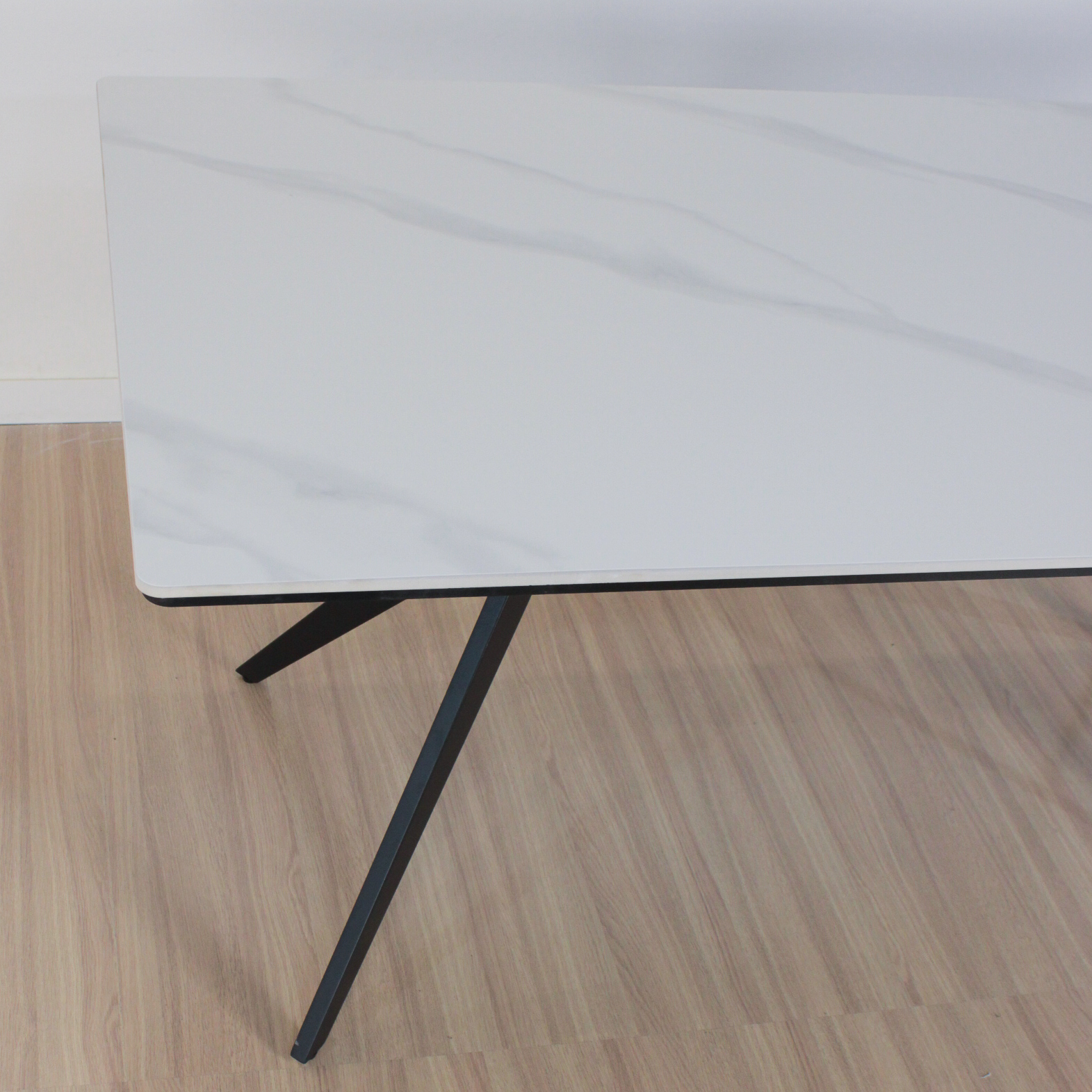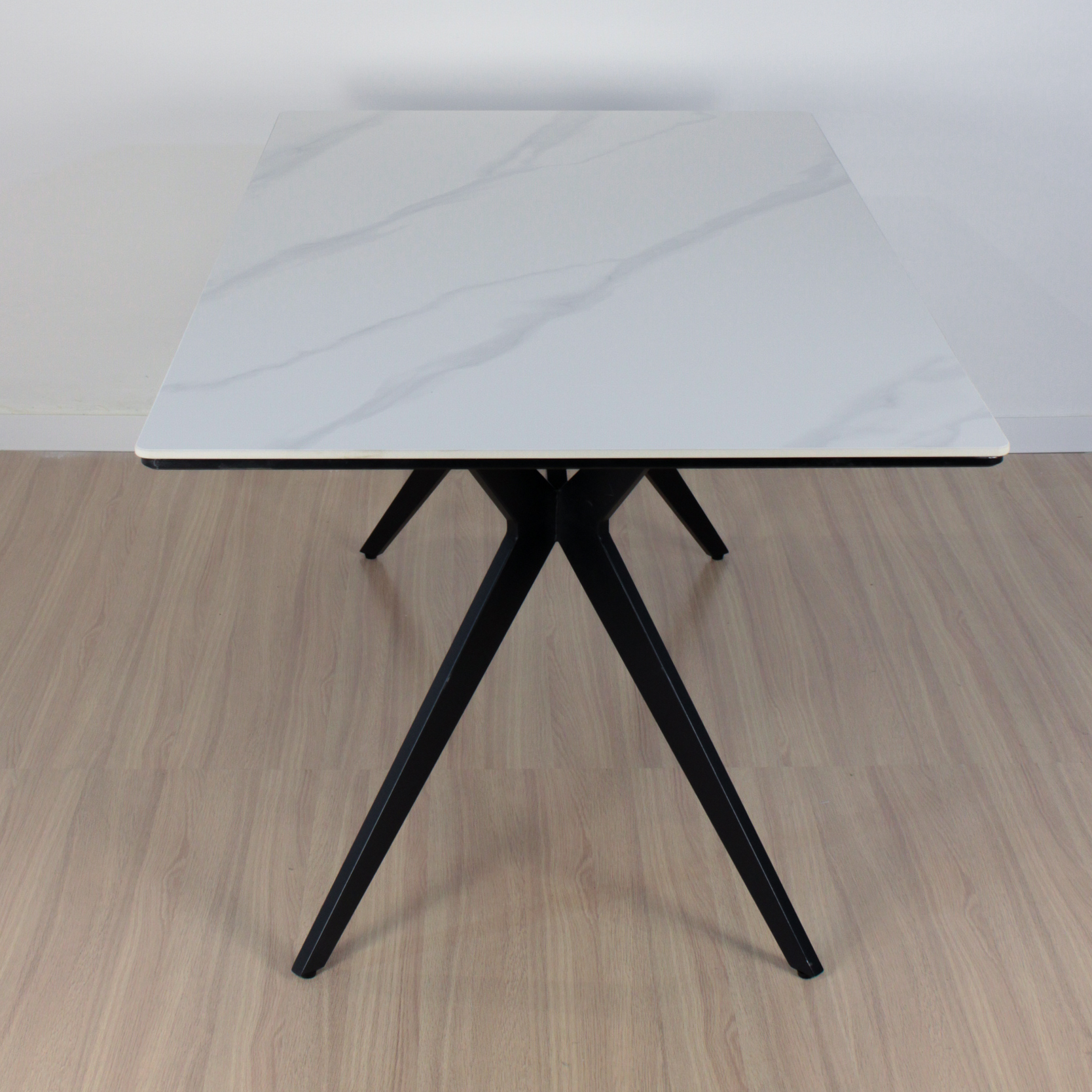 Mesa Oslo rectangular de diseño, de Piedra Sinterizada (Neolith) y patas metálicas negras . Increíble mesa importada de calidad premium.