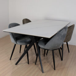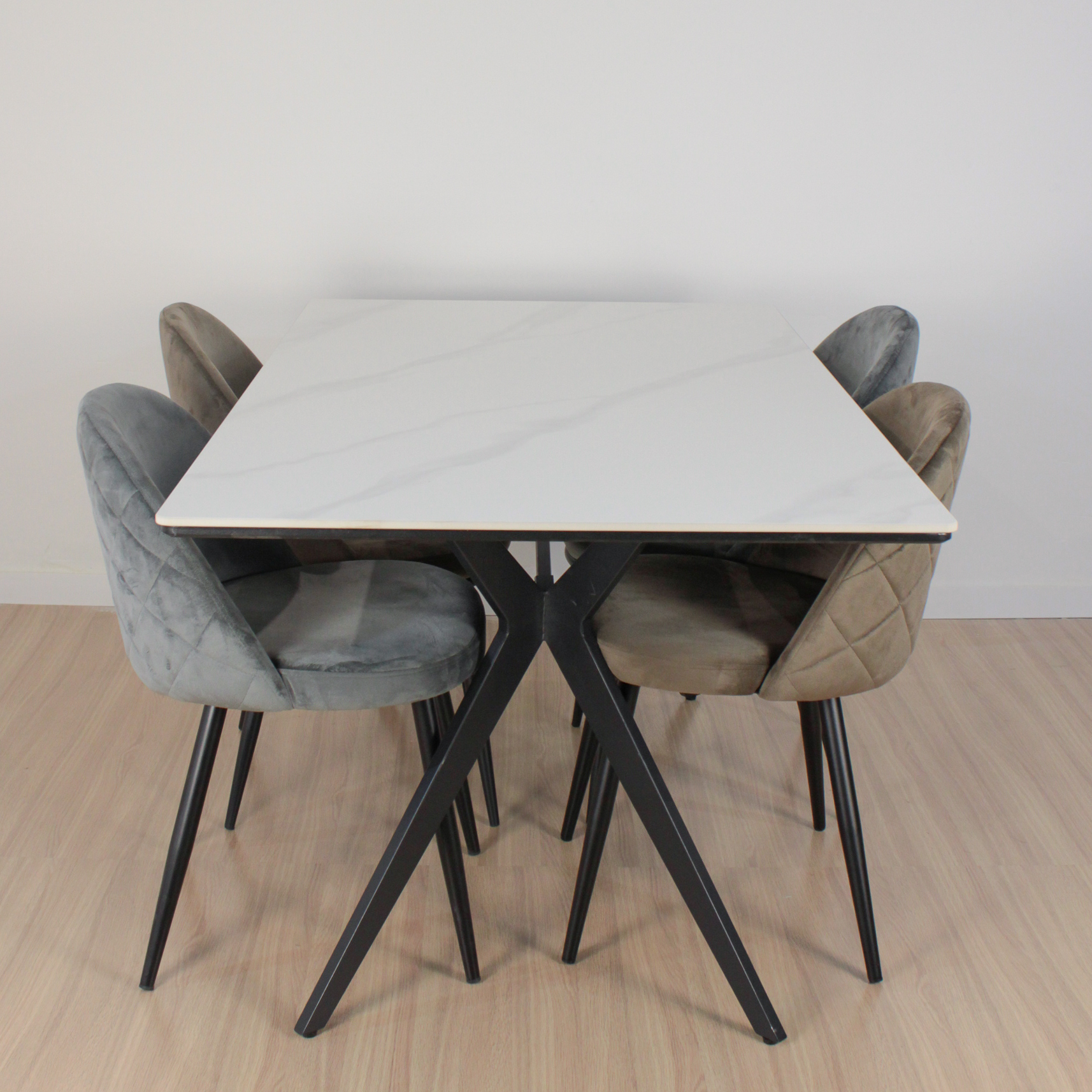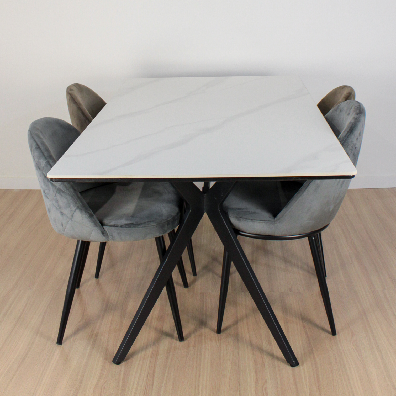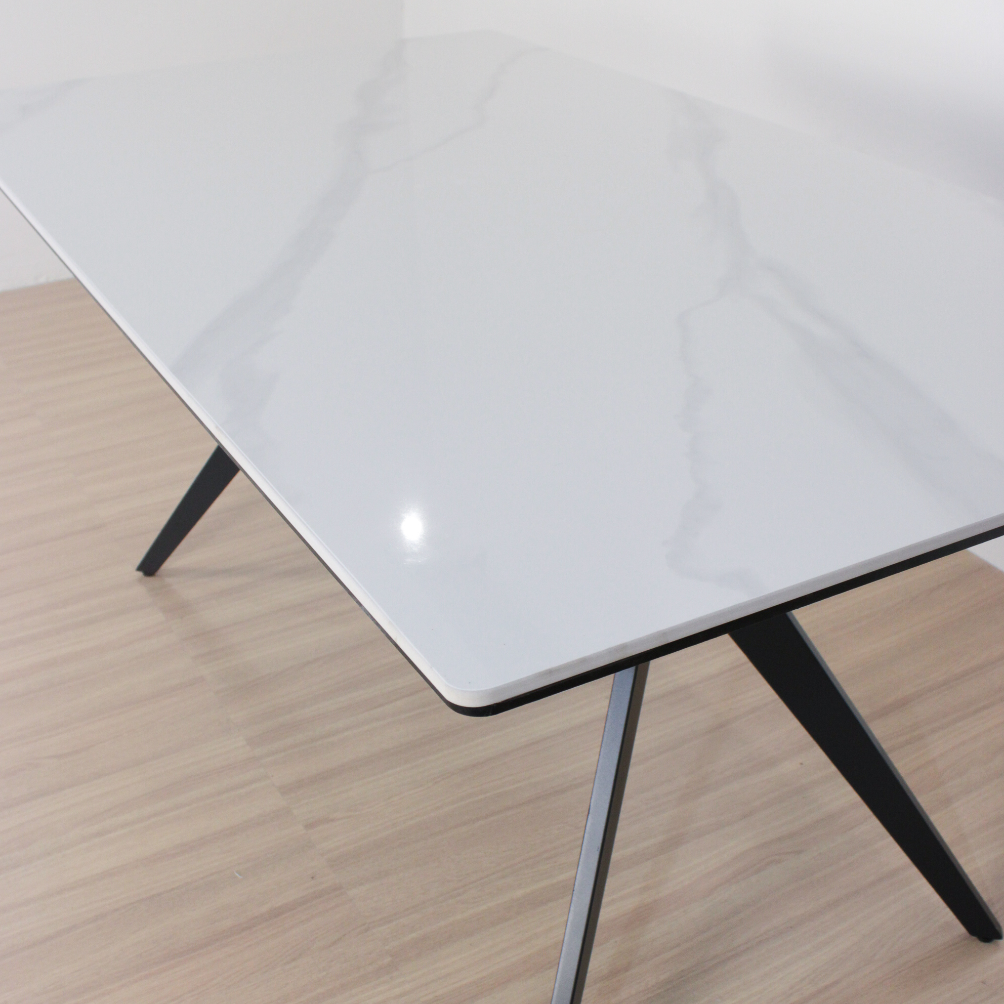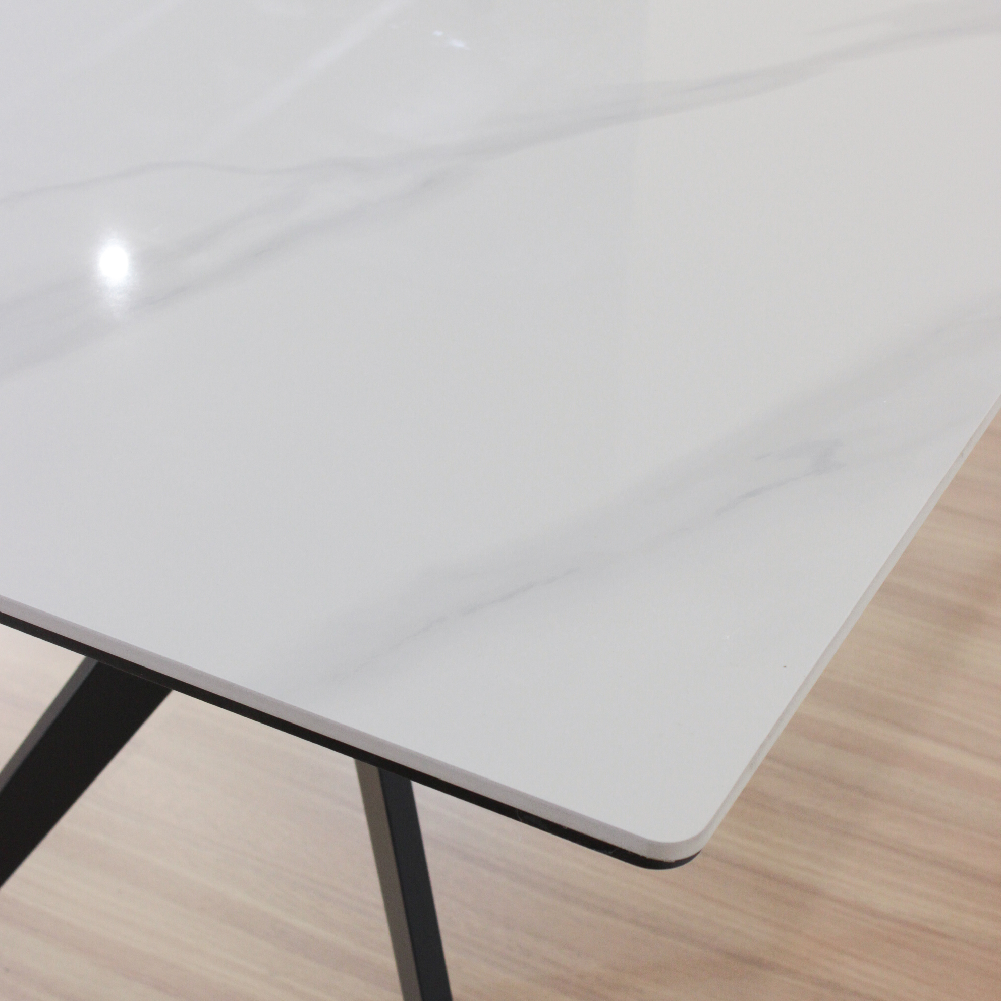 Mesa Oslo rectangular de diseño, de Piedra Sinterizada (Neolith) y patas metálicas negras . Increíble mesa importada de calidad premium.