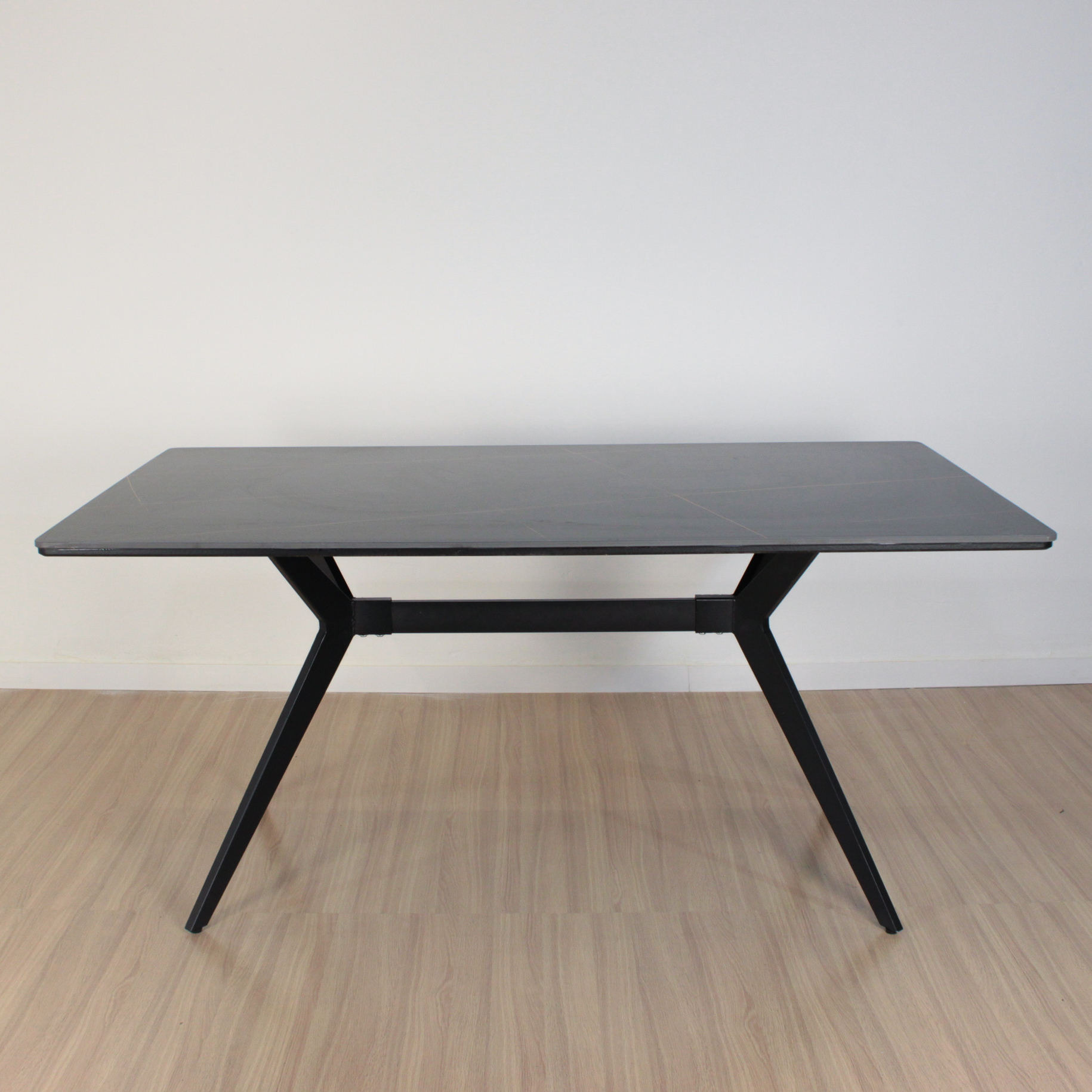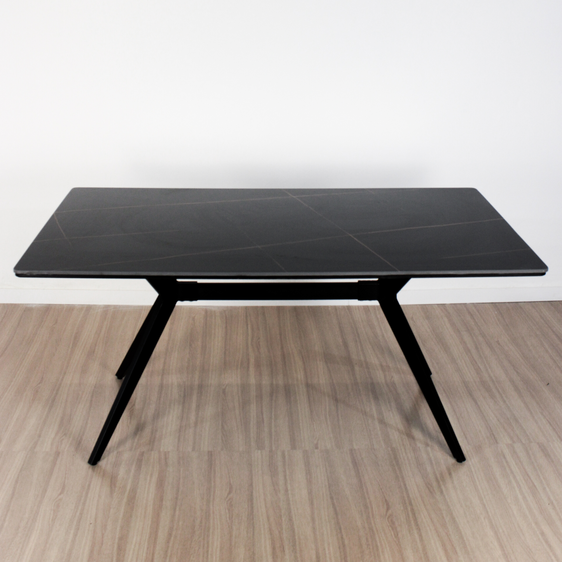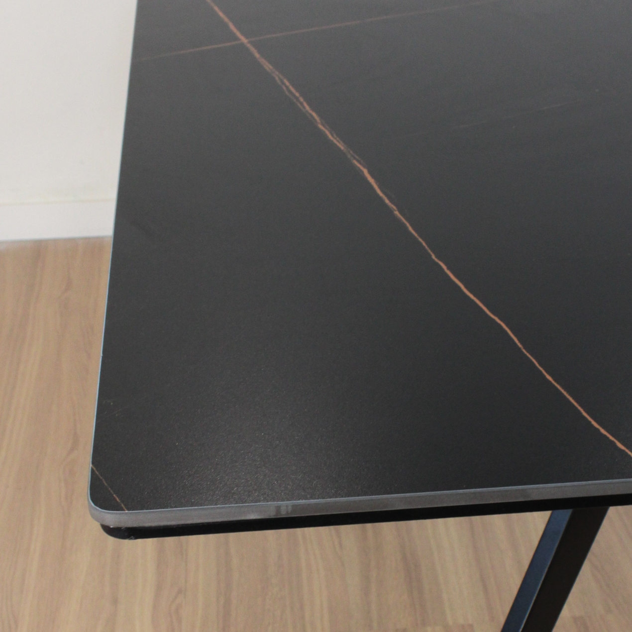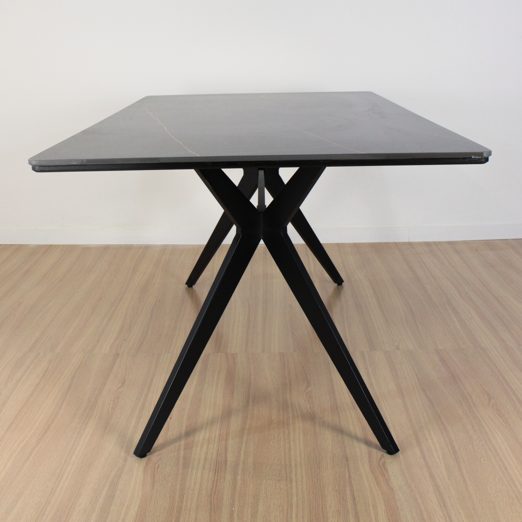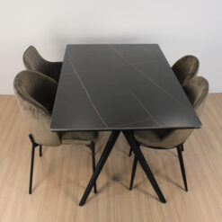 Mesa Oslo rectangular de diseño, de Piedra Sinterizada (Neolith) y patas metálicas negras . Increíble mesa importada de calidad premium.