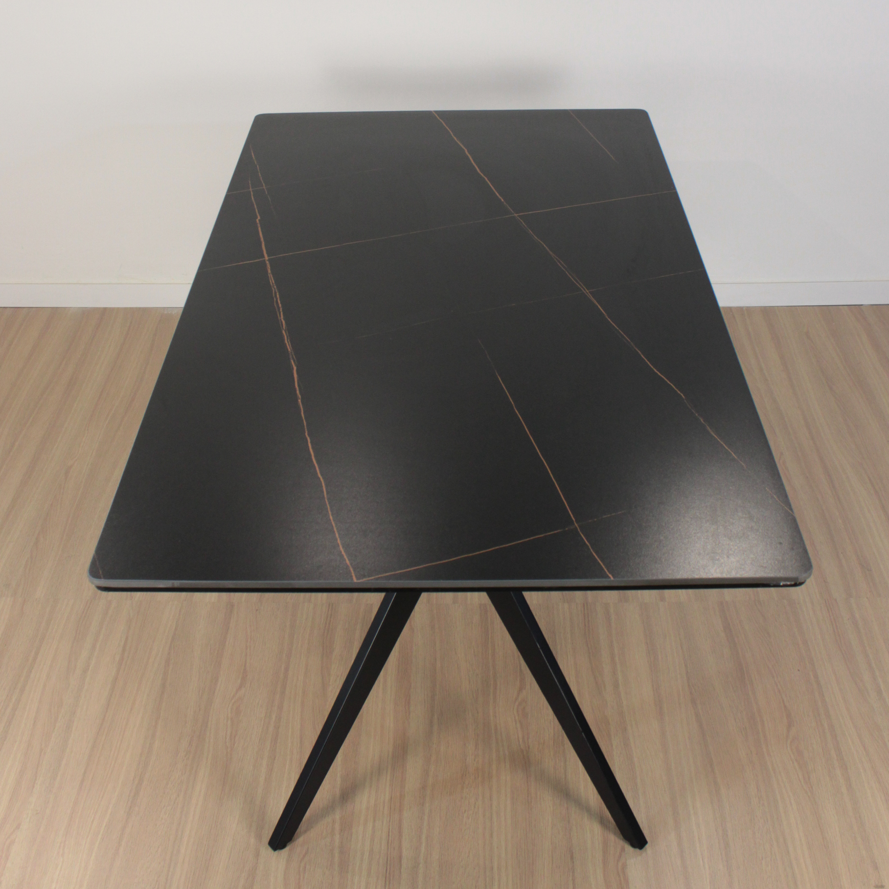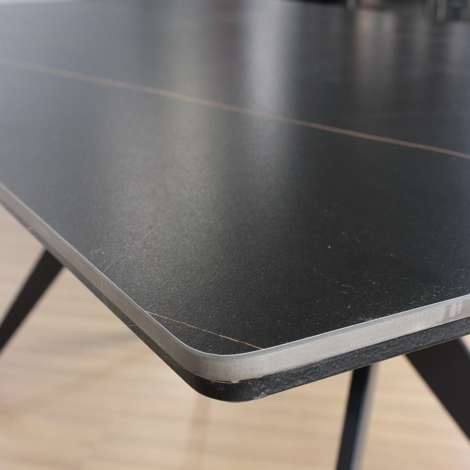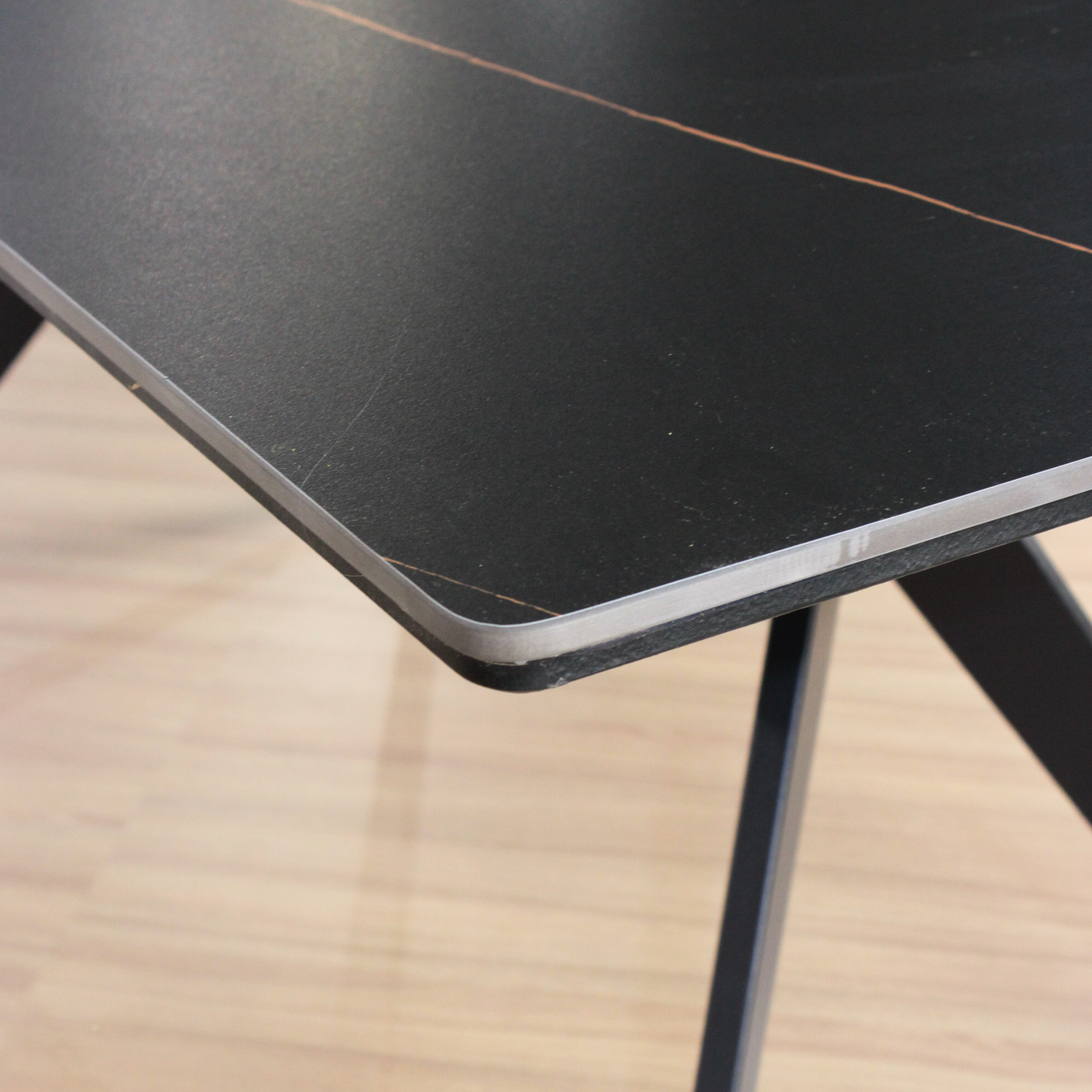 Mesa Oslo rectangular de diseño, de Piedra Sinterizada (Neolith) y patas metálicas negras . Increíble mesa importada de calidad premium.