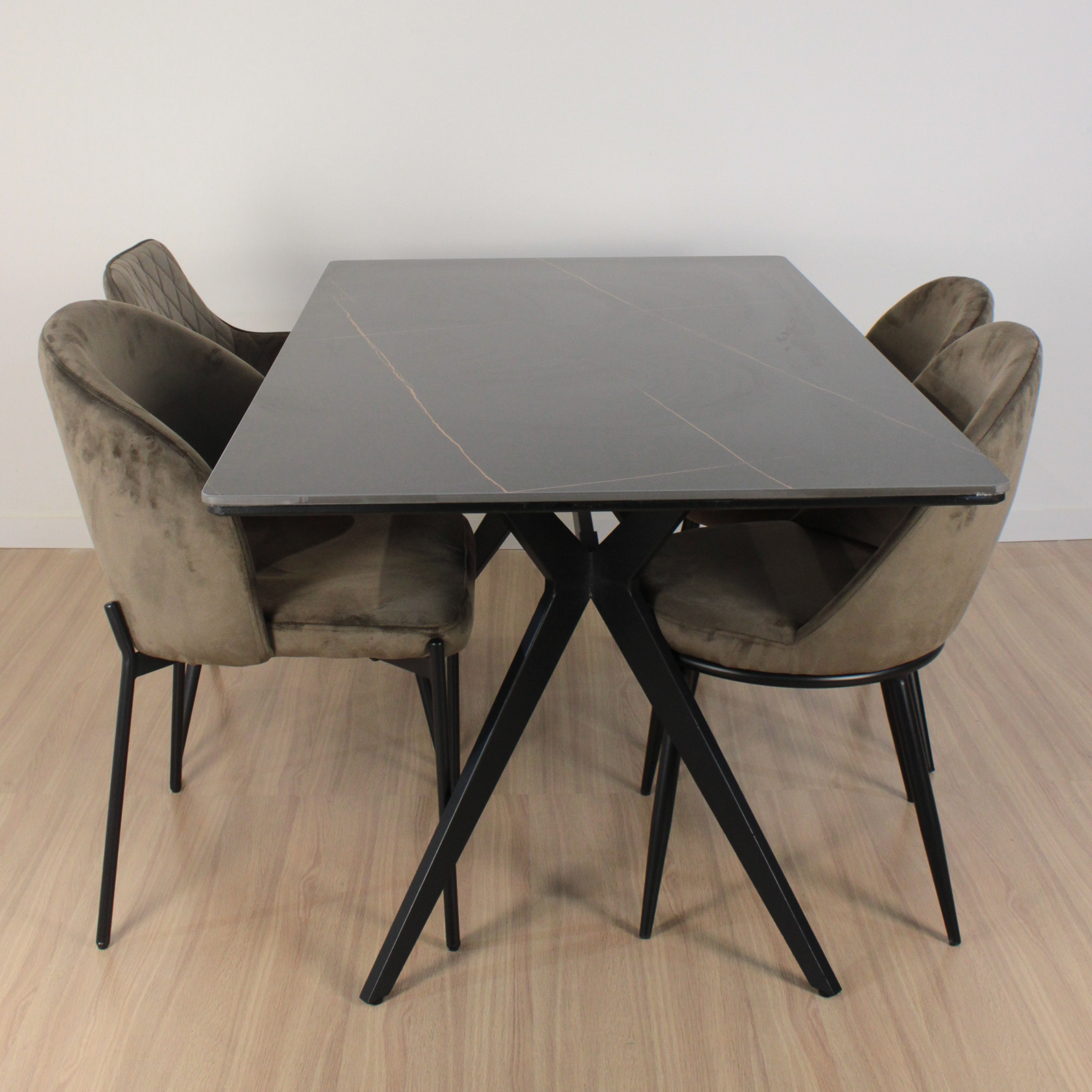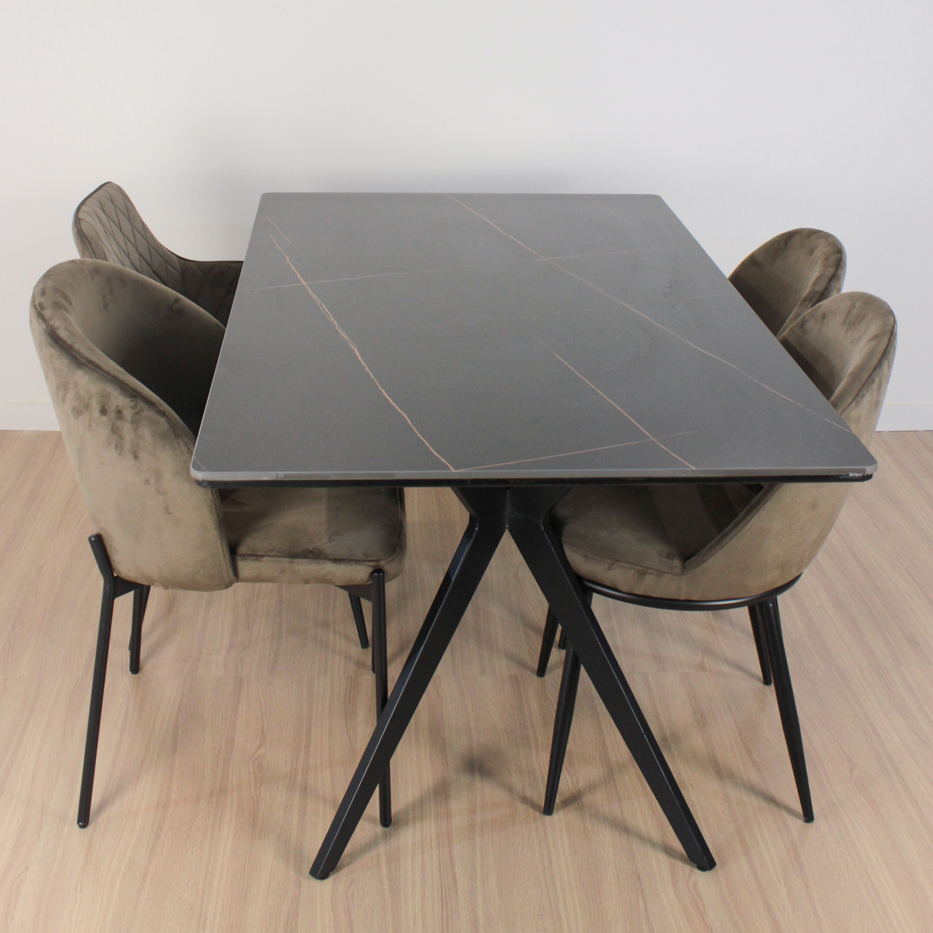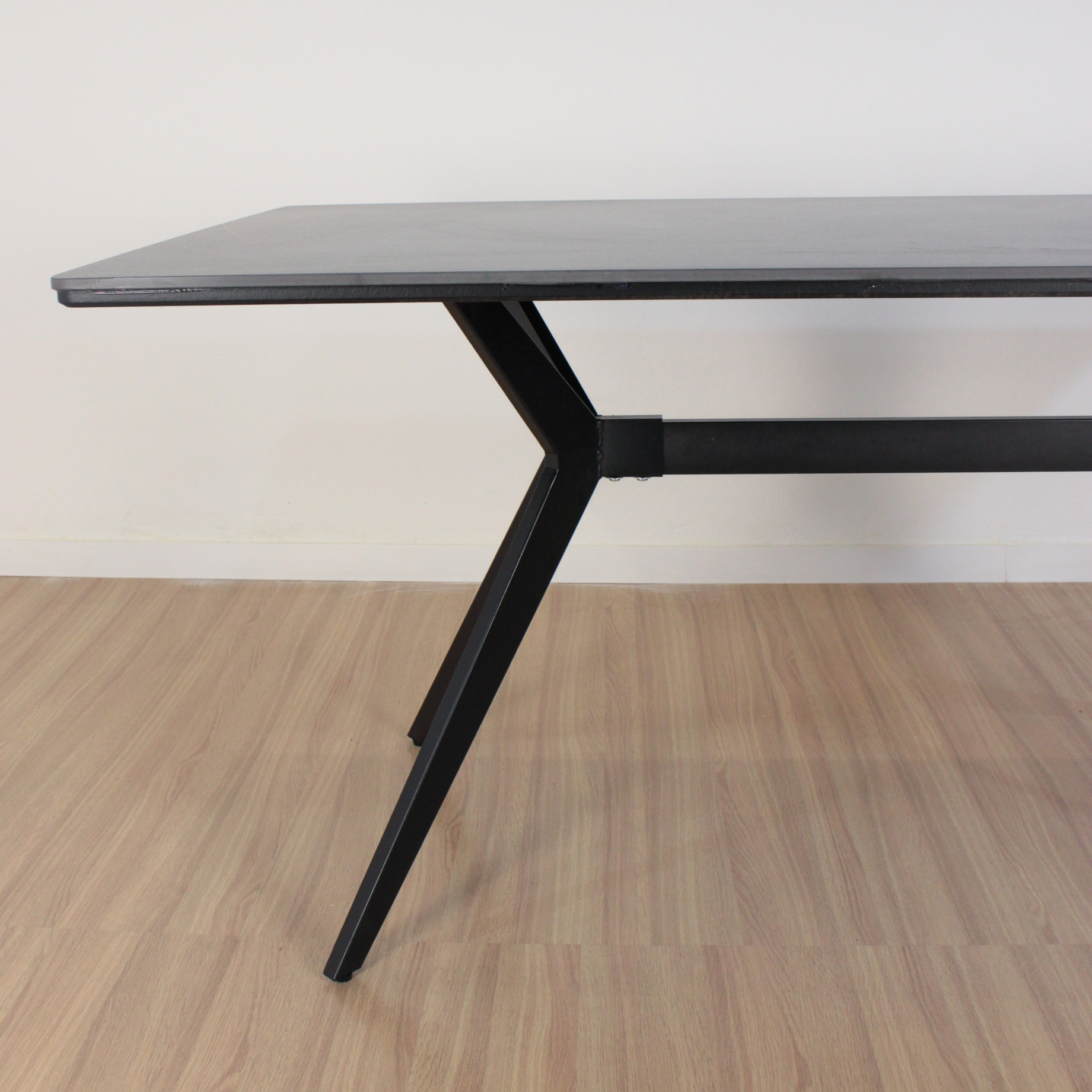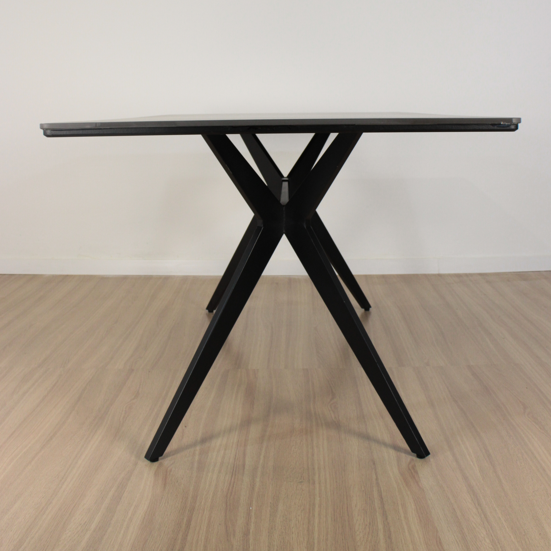 Mesa Oslo rectangular de diseño, de Piedra Sinterizada (Neolith) y patas metálicas negras . Increíble mesa importada de calidad premium.