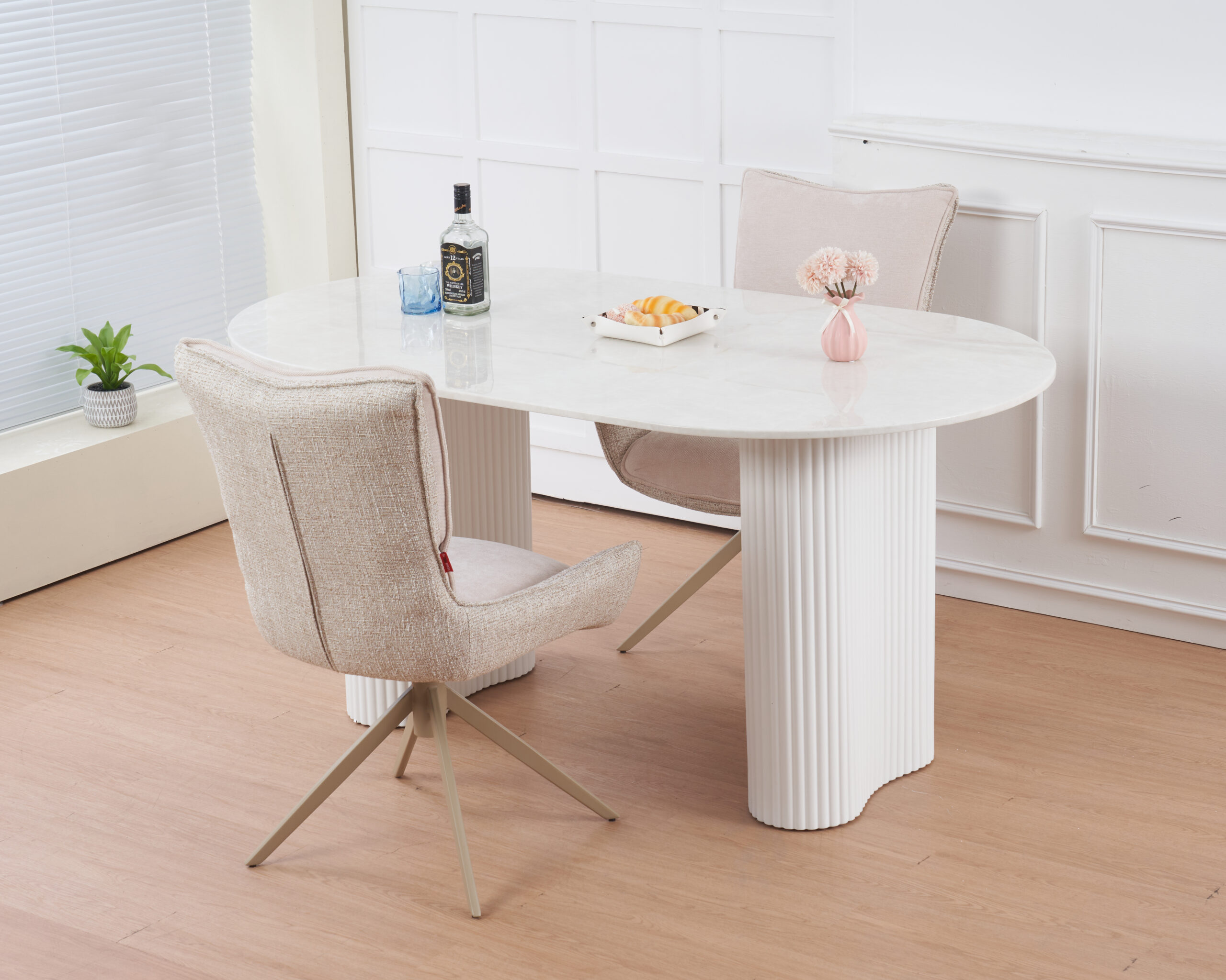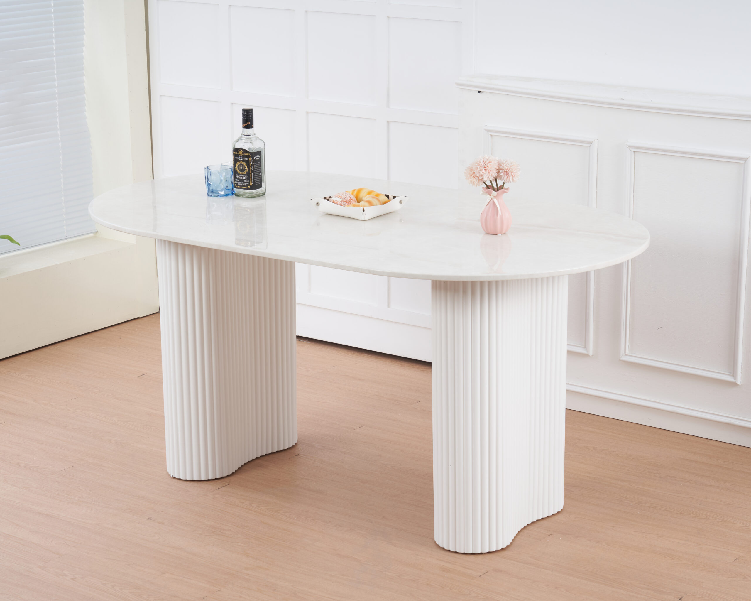 MESA PORTUGAL OVALADA TAPA CERAMICA BLANCA 160CM