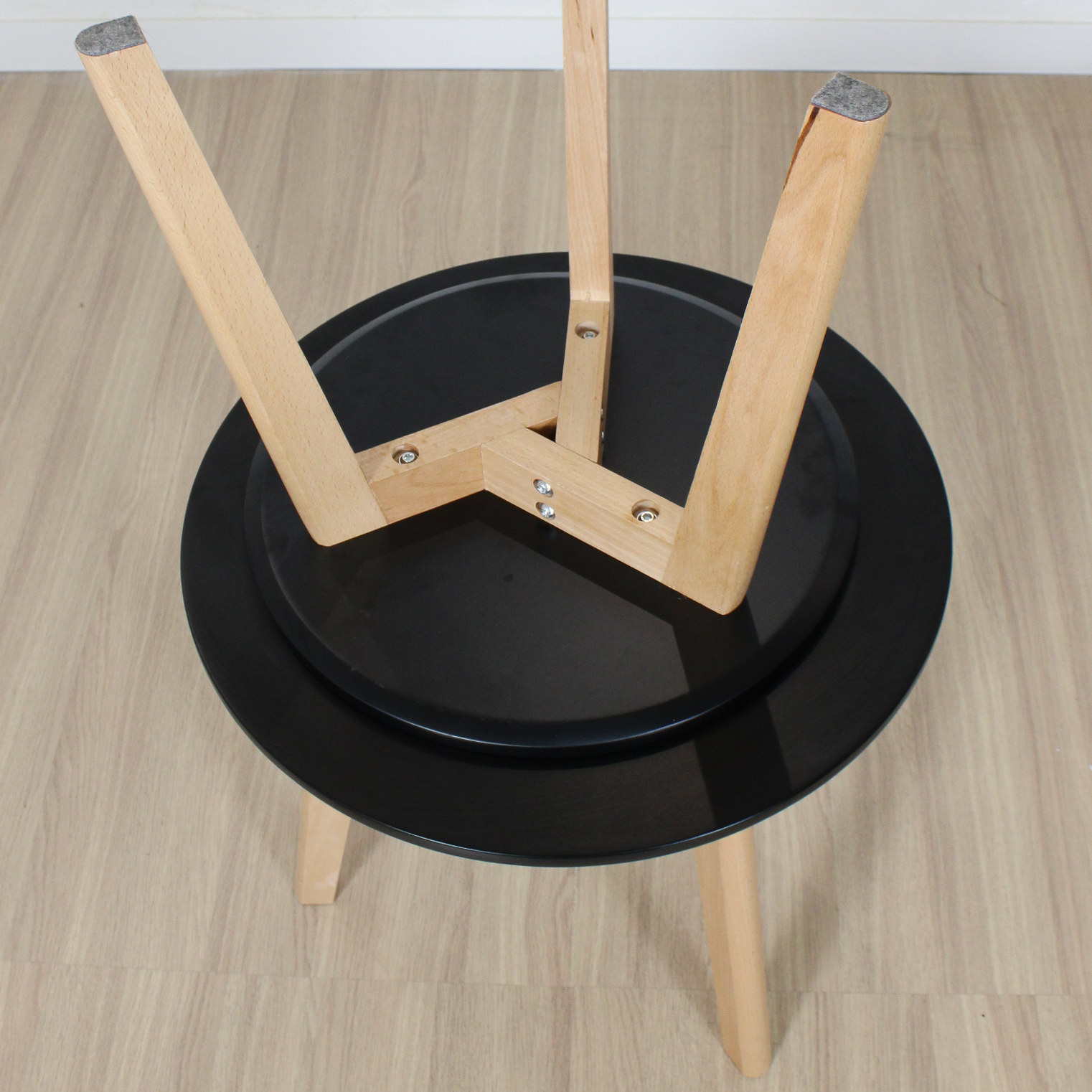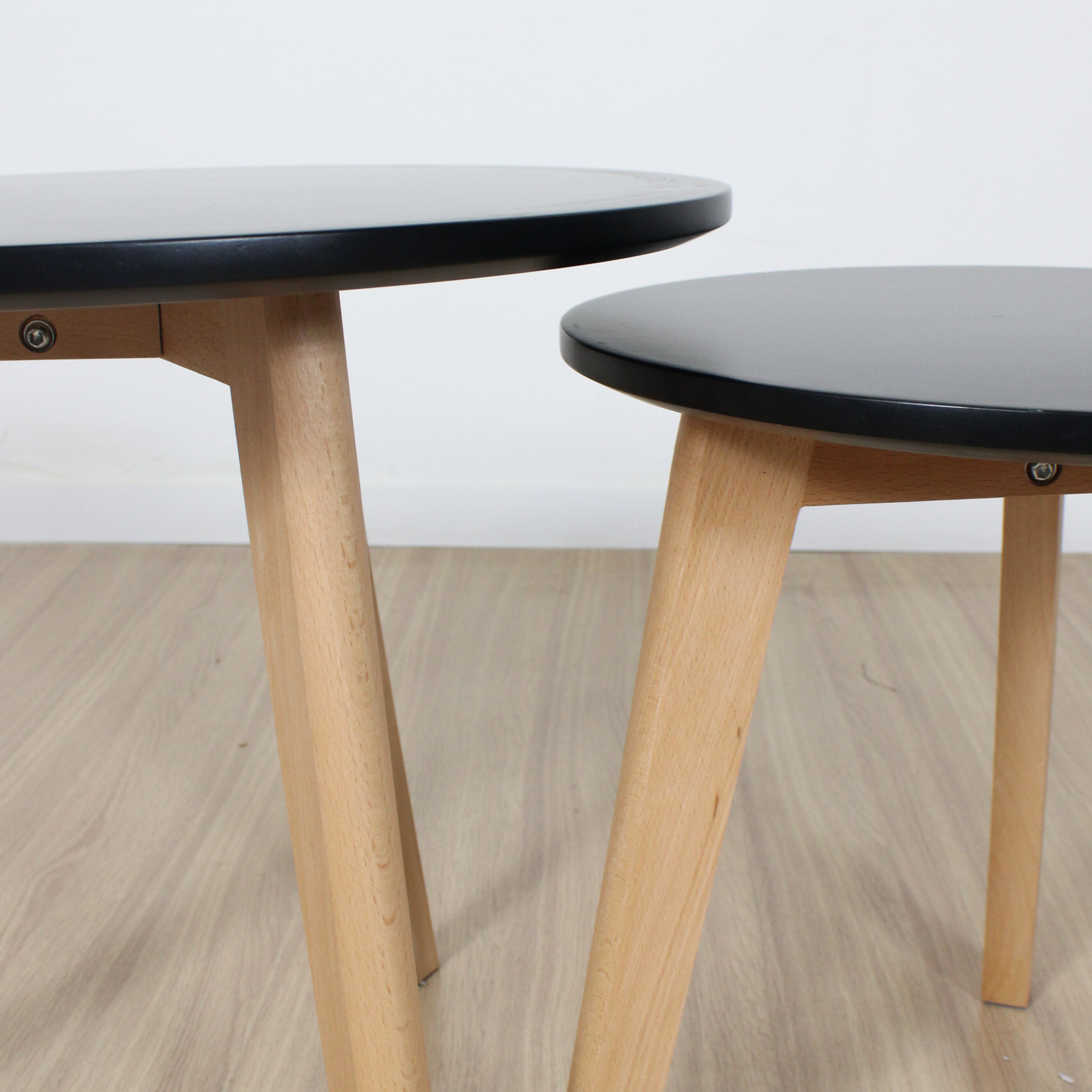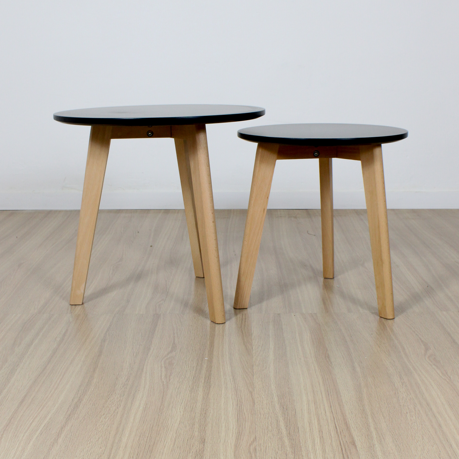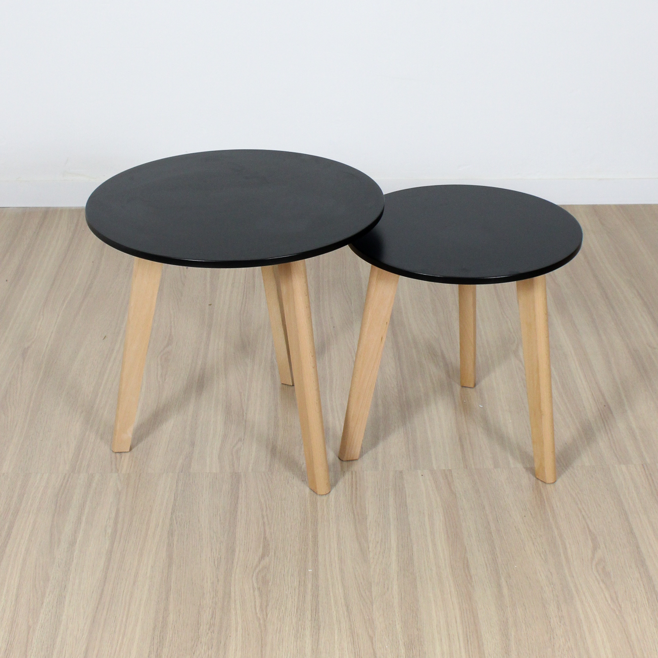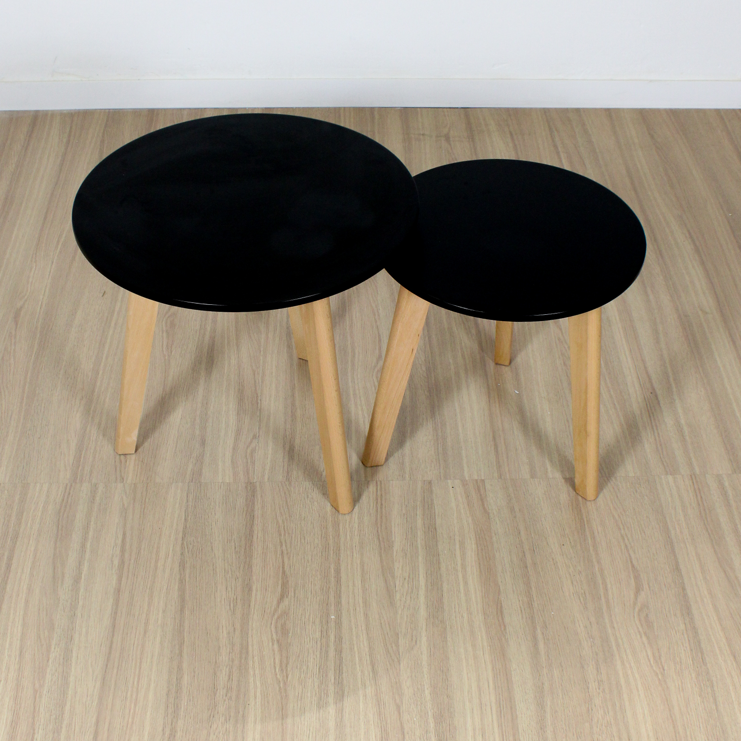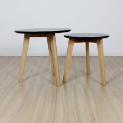 Mesa ratona doble redonda de diseño, laqueadas con patas de madera,