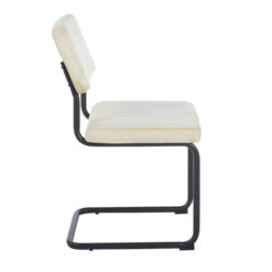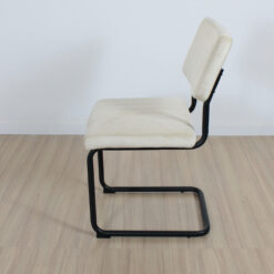 Silla de estructura metálica, recubierta en polvo negro. Asiento acolchonado tapizado en pana antimancha.