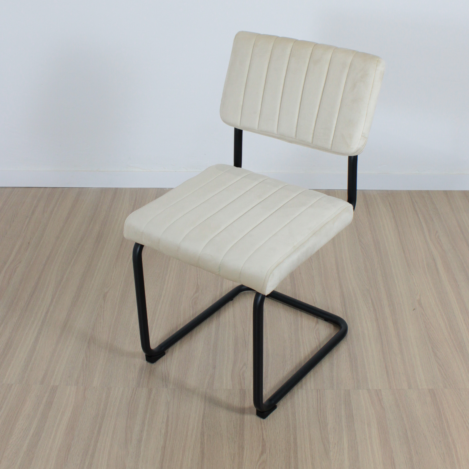 SILLA CESCA BLACK TAPIZADA PANA BEIGE