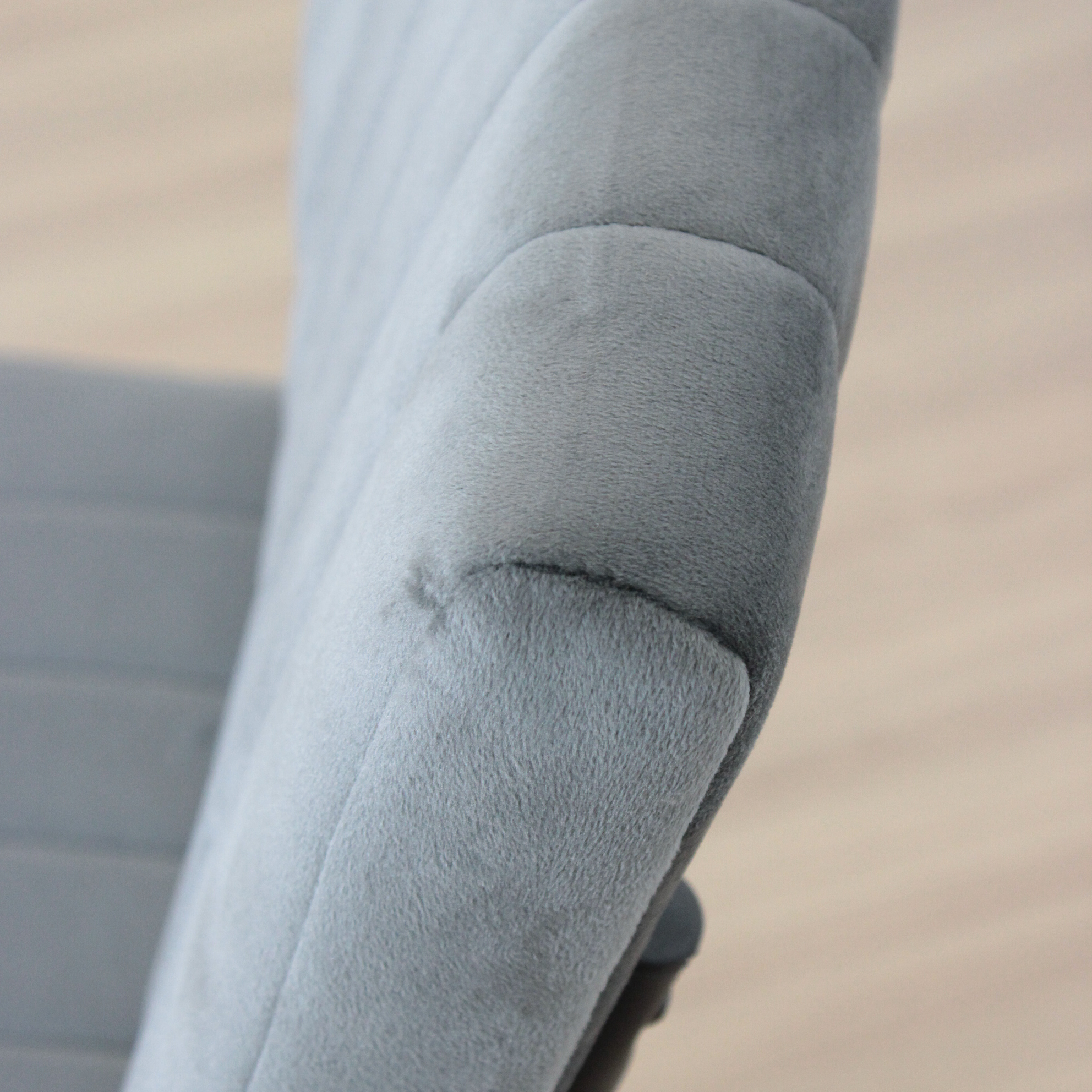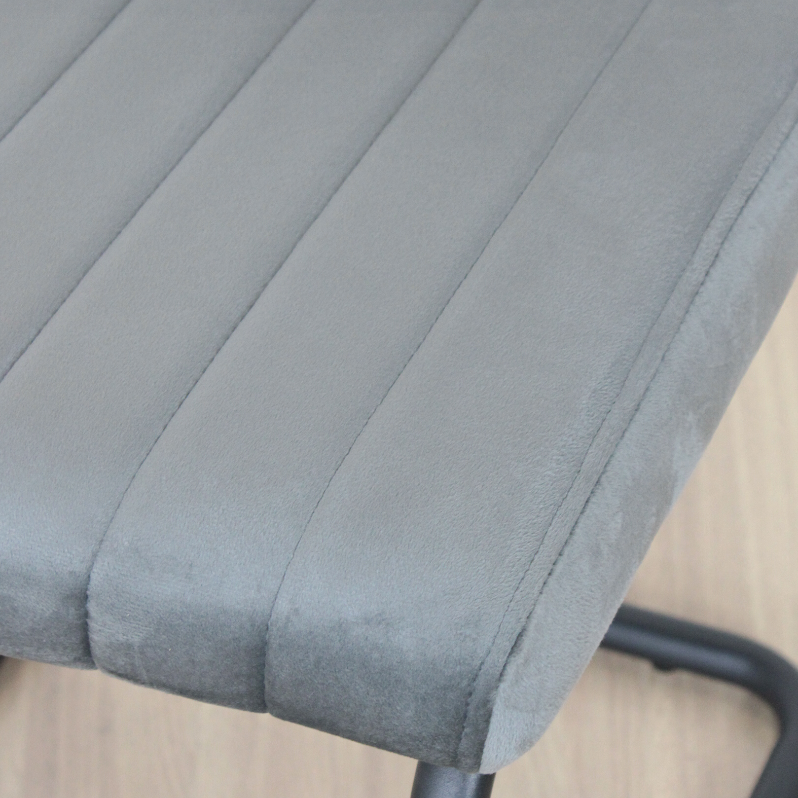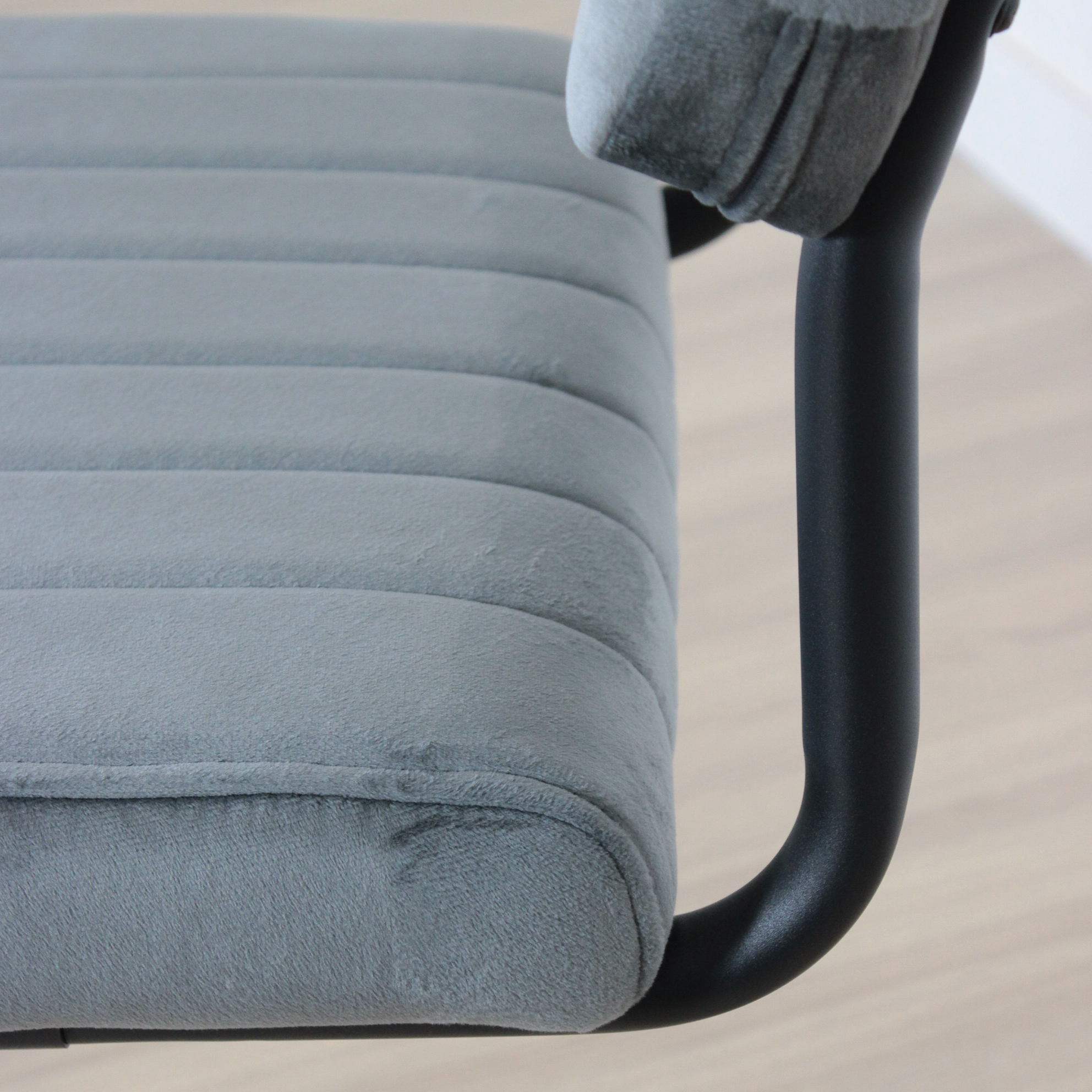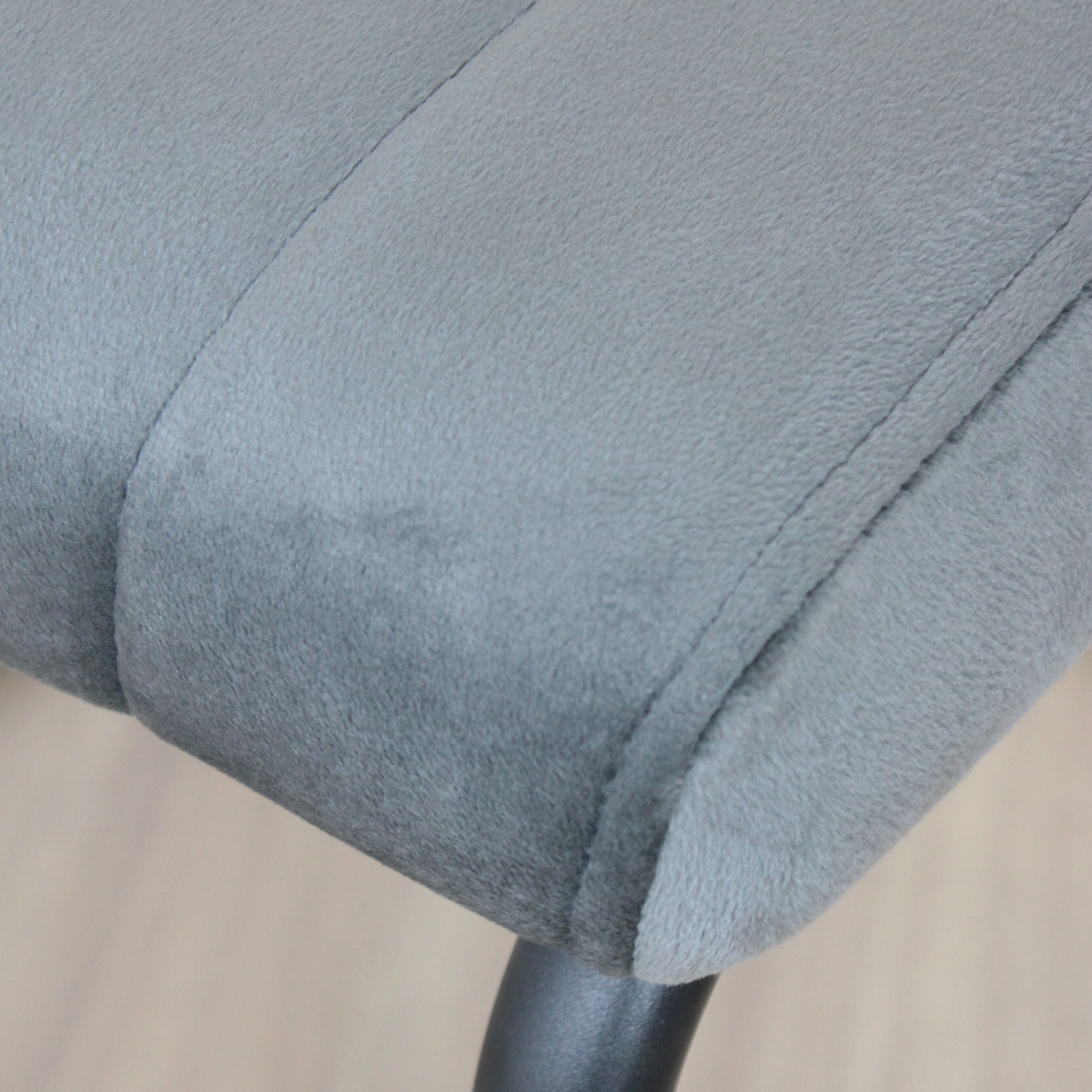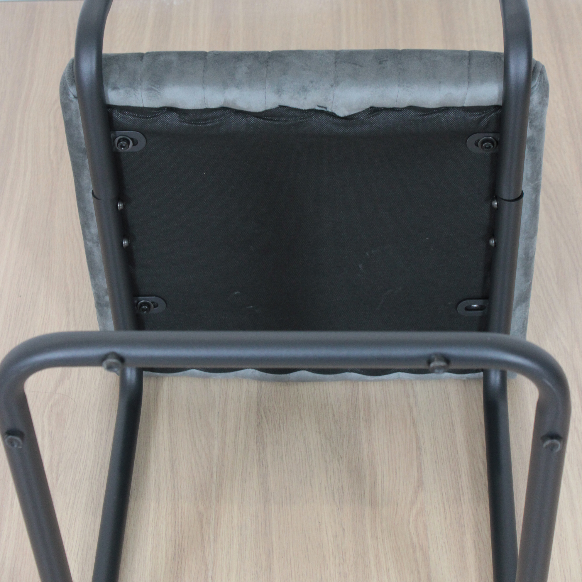 Silla de estructura metálica, recubierta en polvo negro. Asiento acolchonado tapizado en pana antimancha.