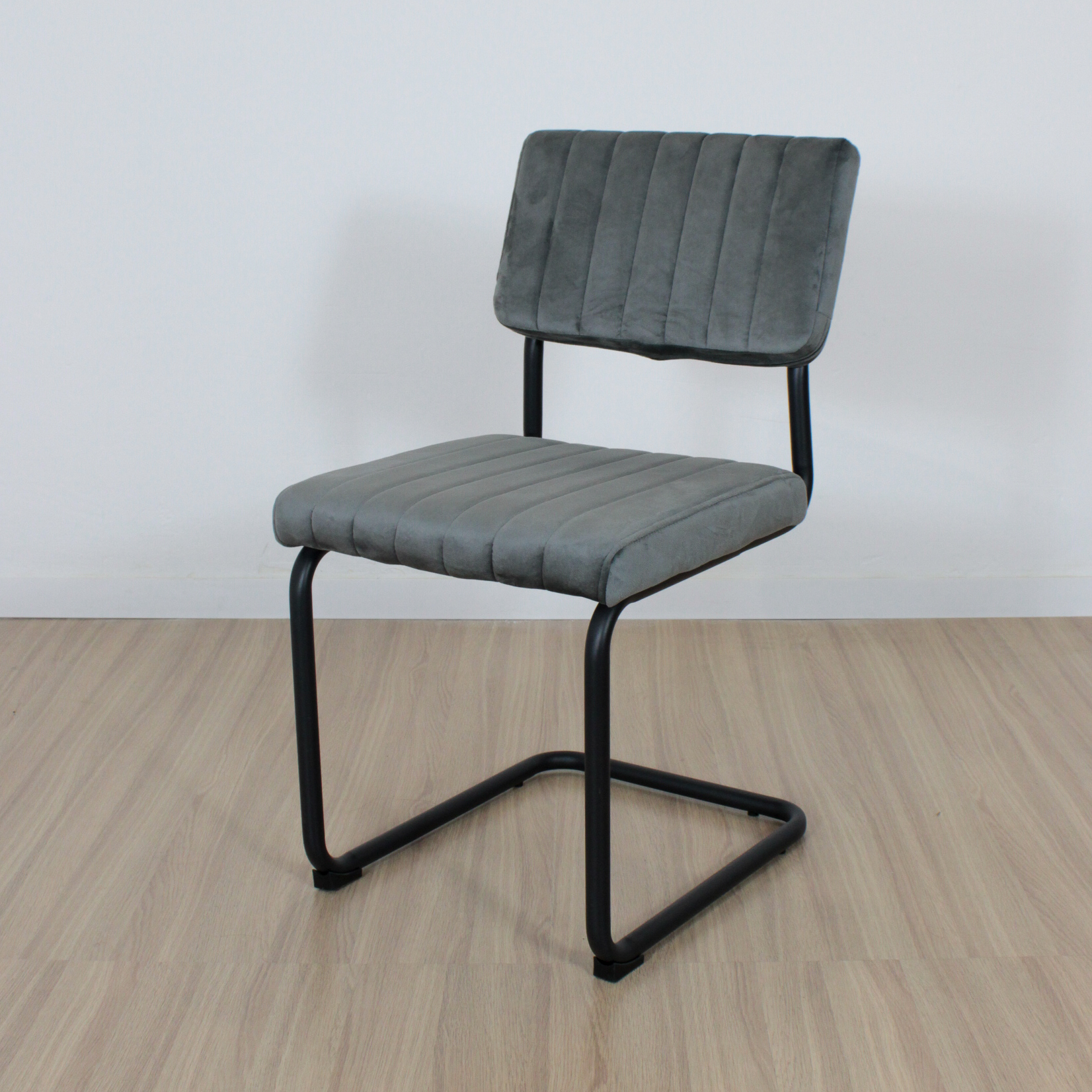 SILLA CESCA BLACK TAPIZADA PANA GRIS