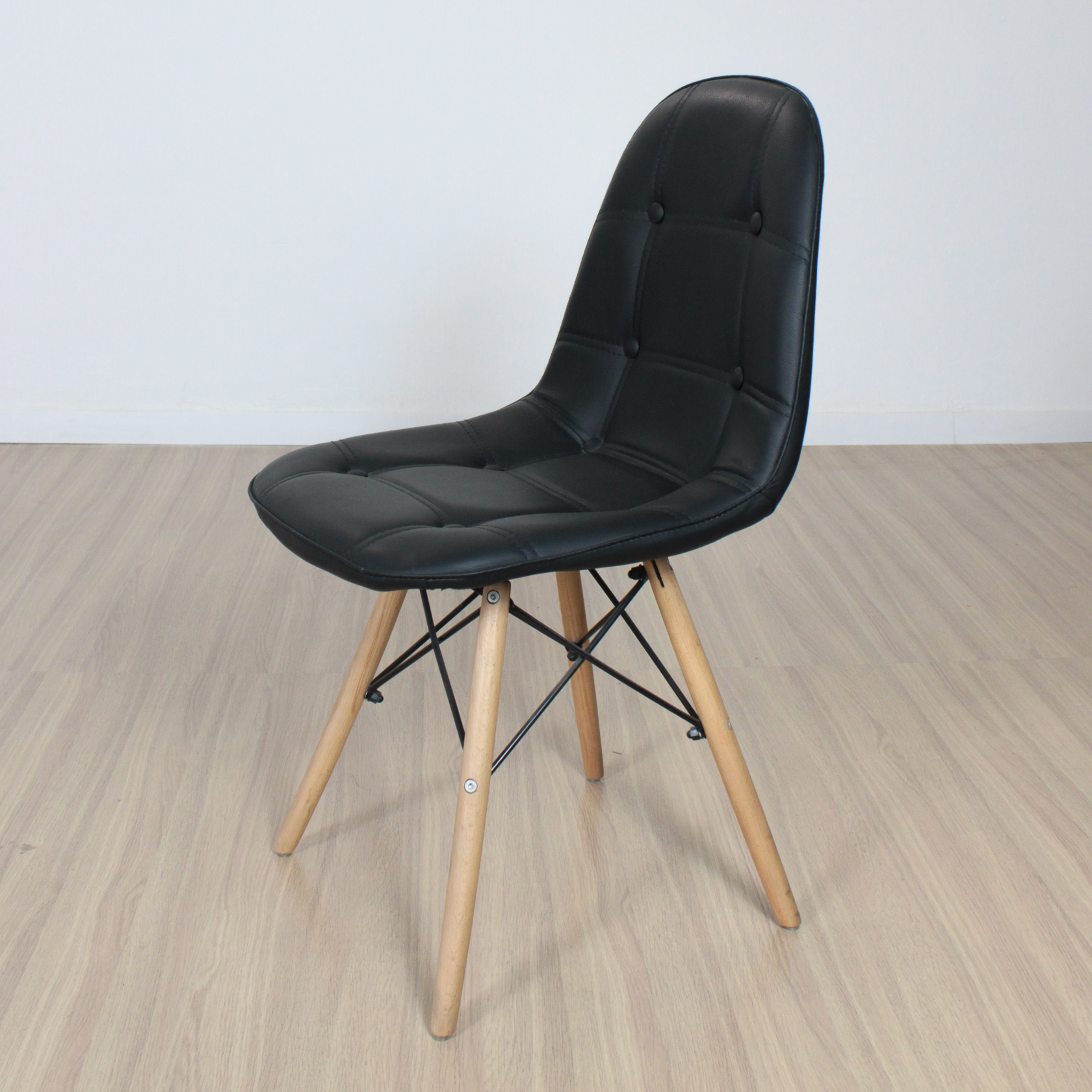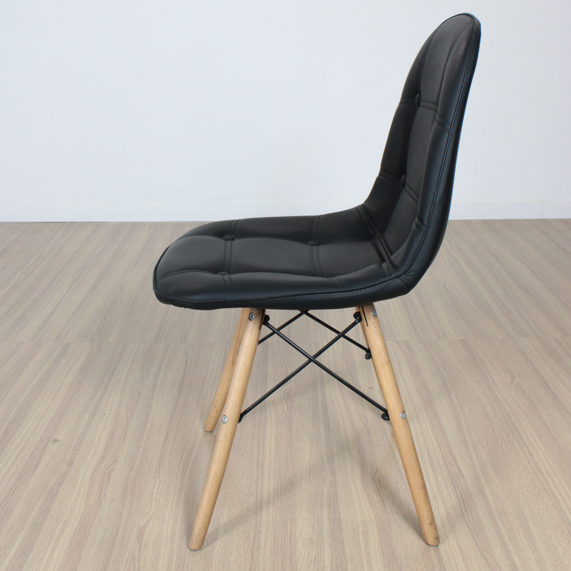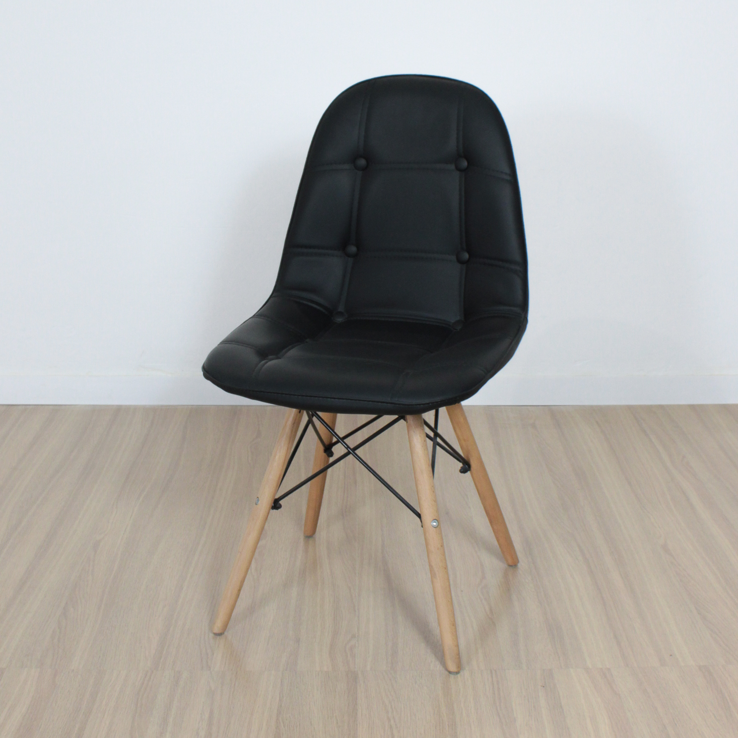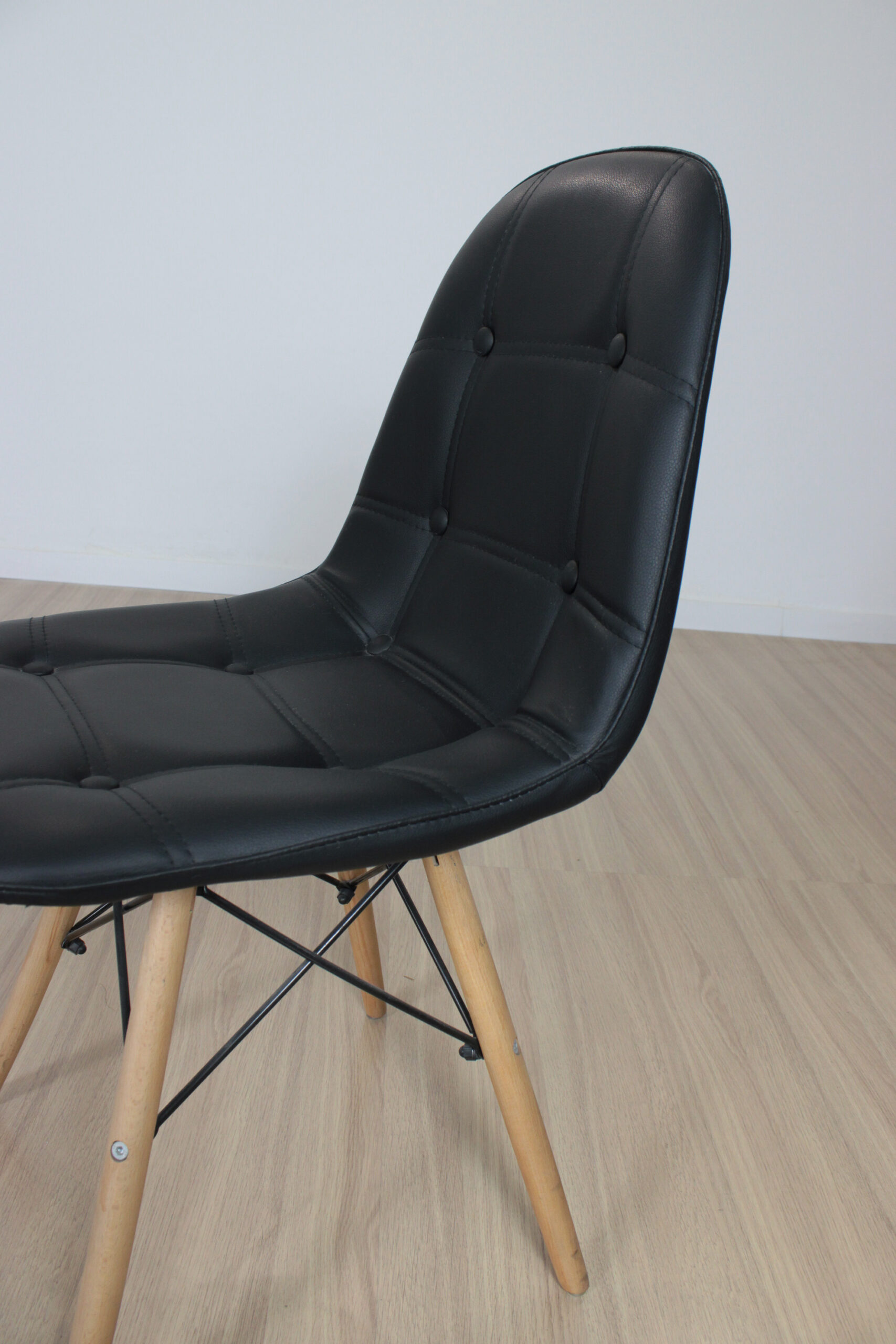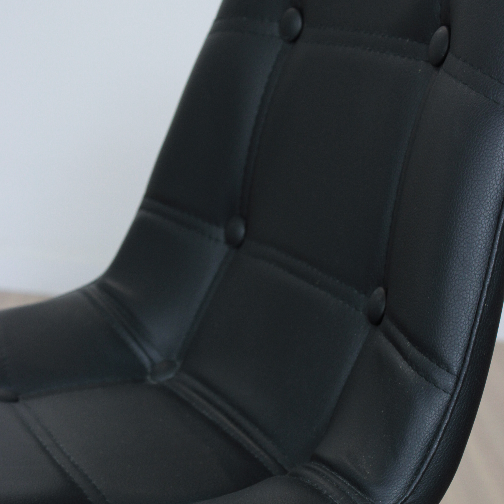 Silla de patas de madera haya con estructura metálica negro con asiento de madera tapizado en ecocuero de primera calidad capitoné con acolchado en su interior, antideslizantes.