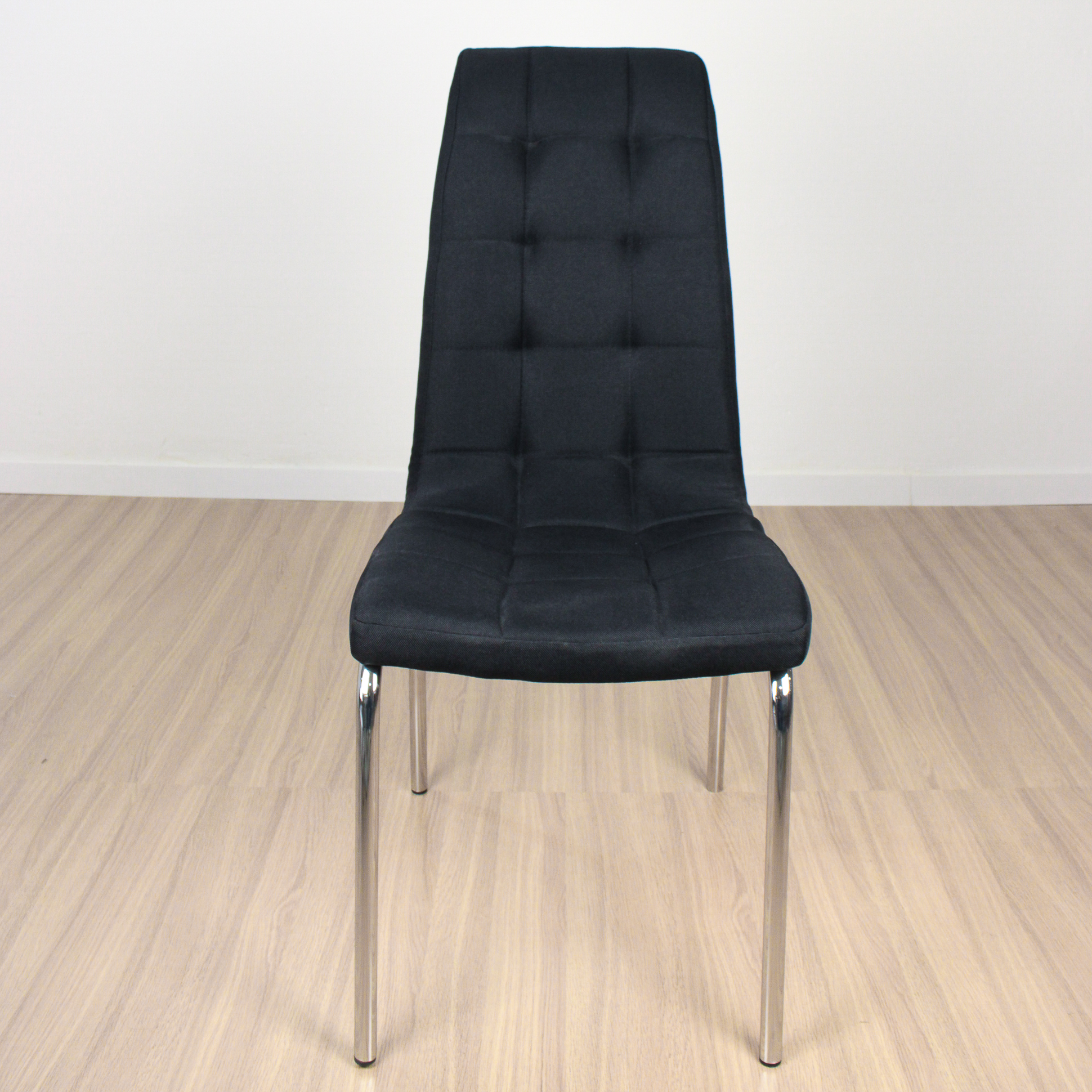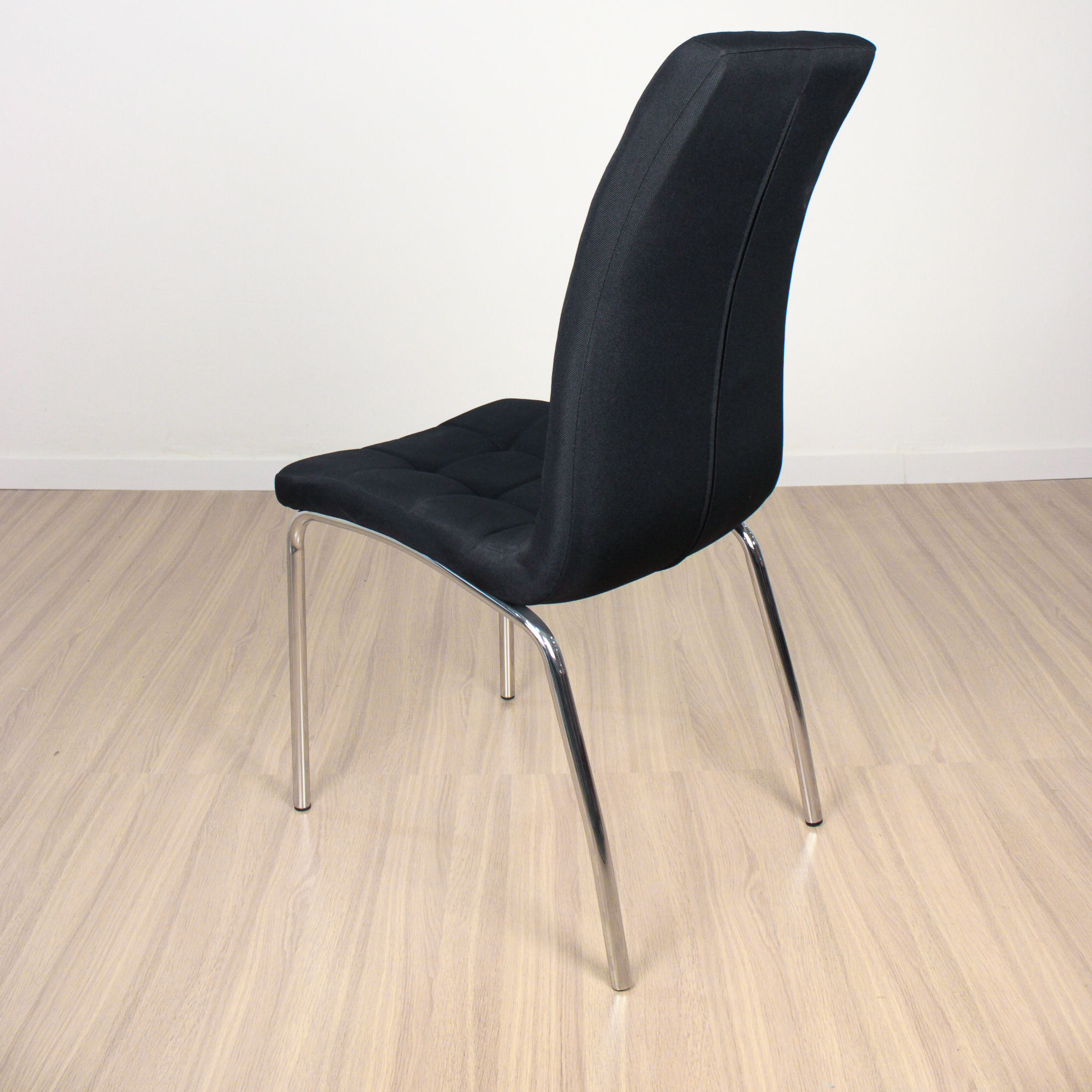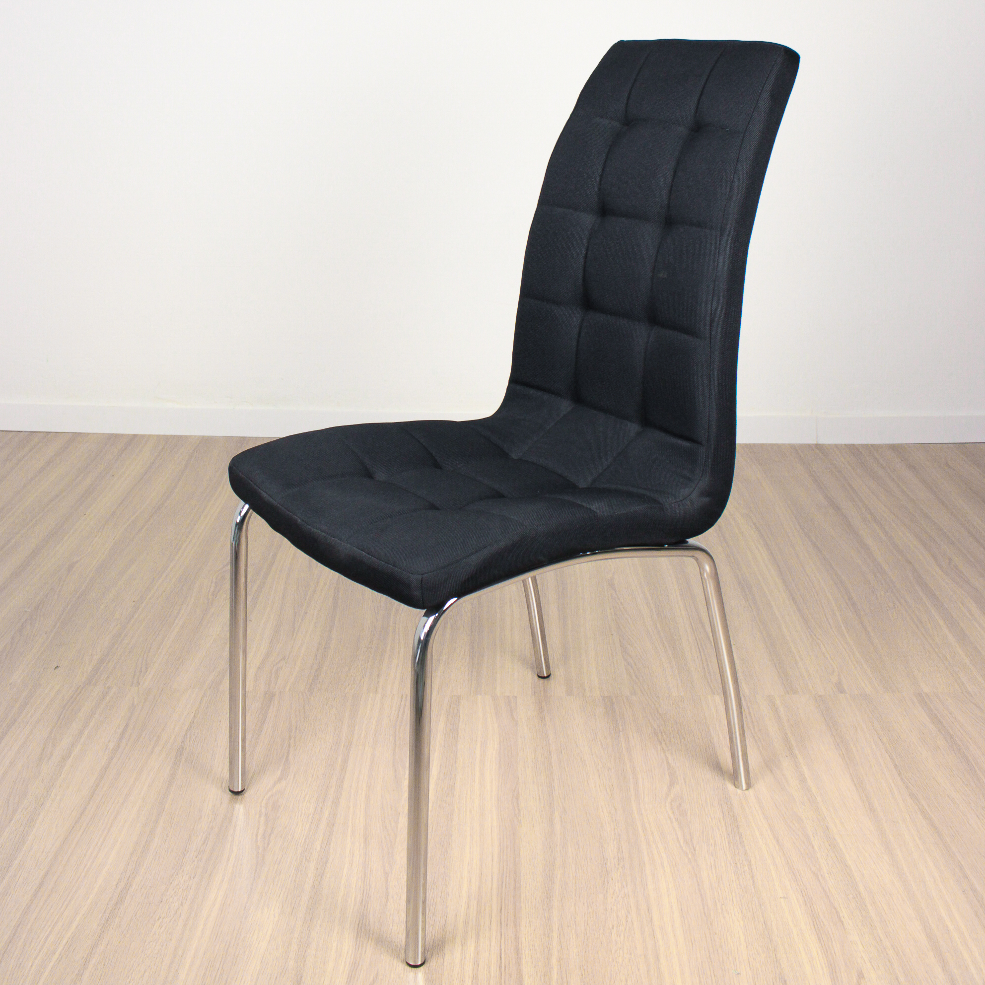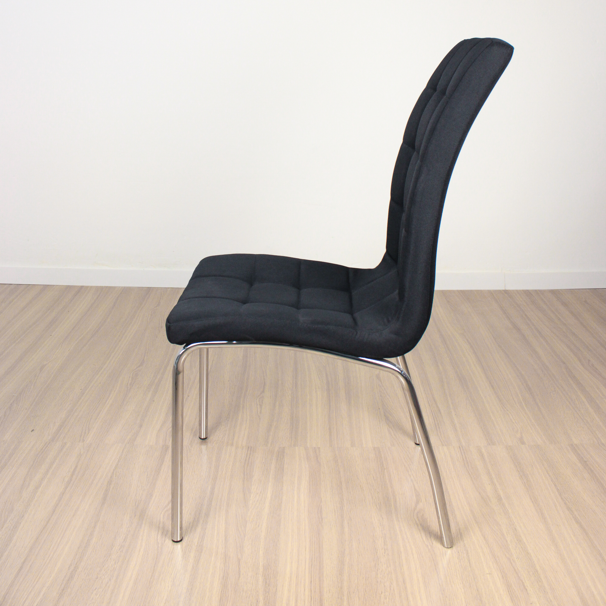 Silla de estructura metálica cromada con asiento tapizado en lino y relleno acolchado de primera calidad. Super resistentes.