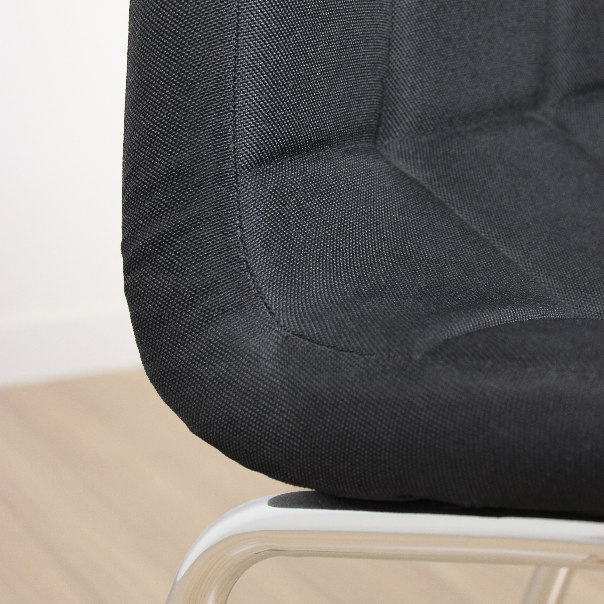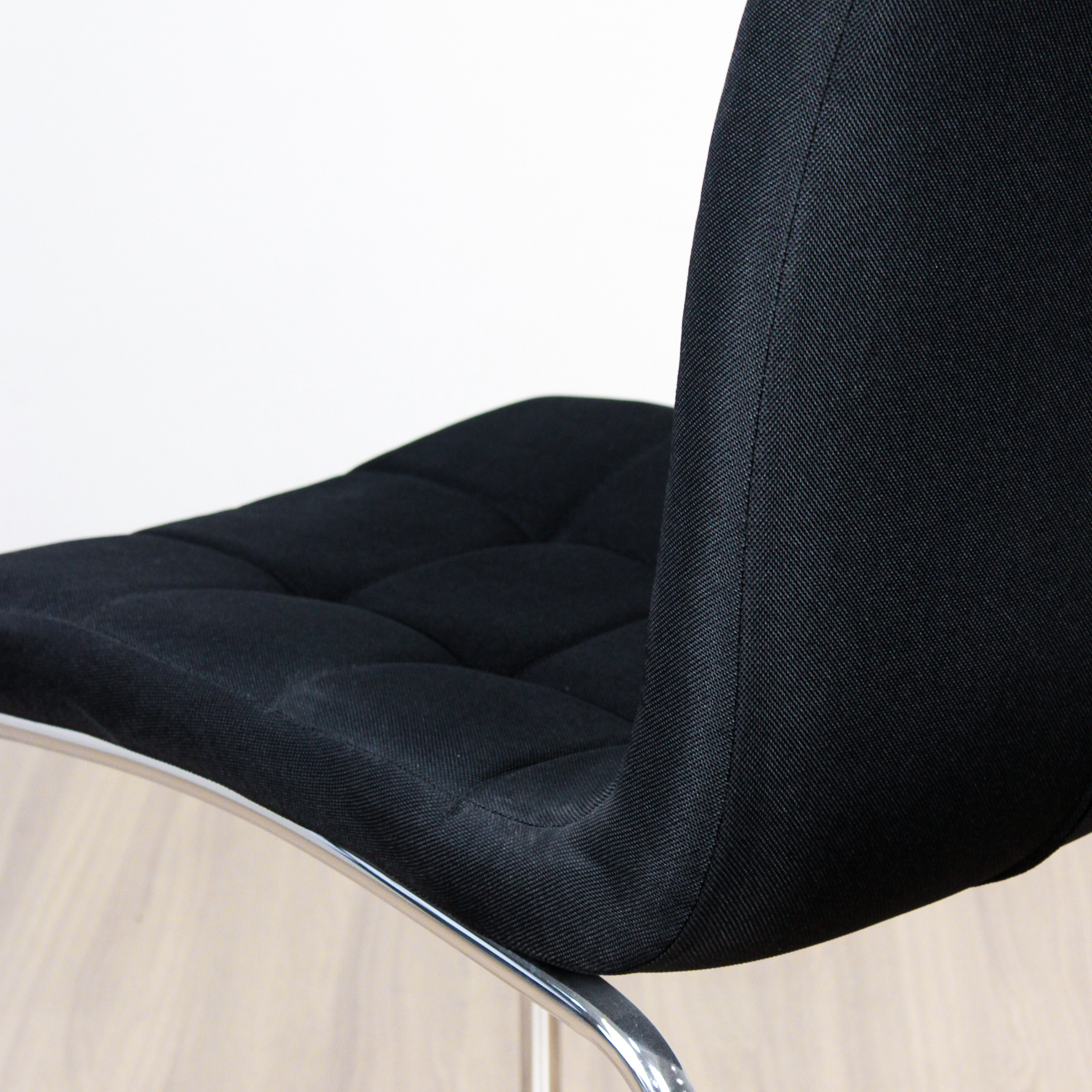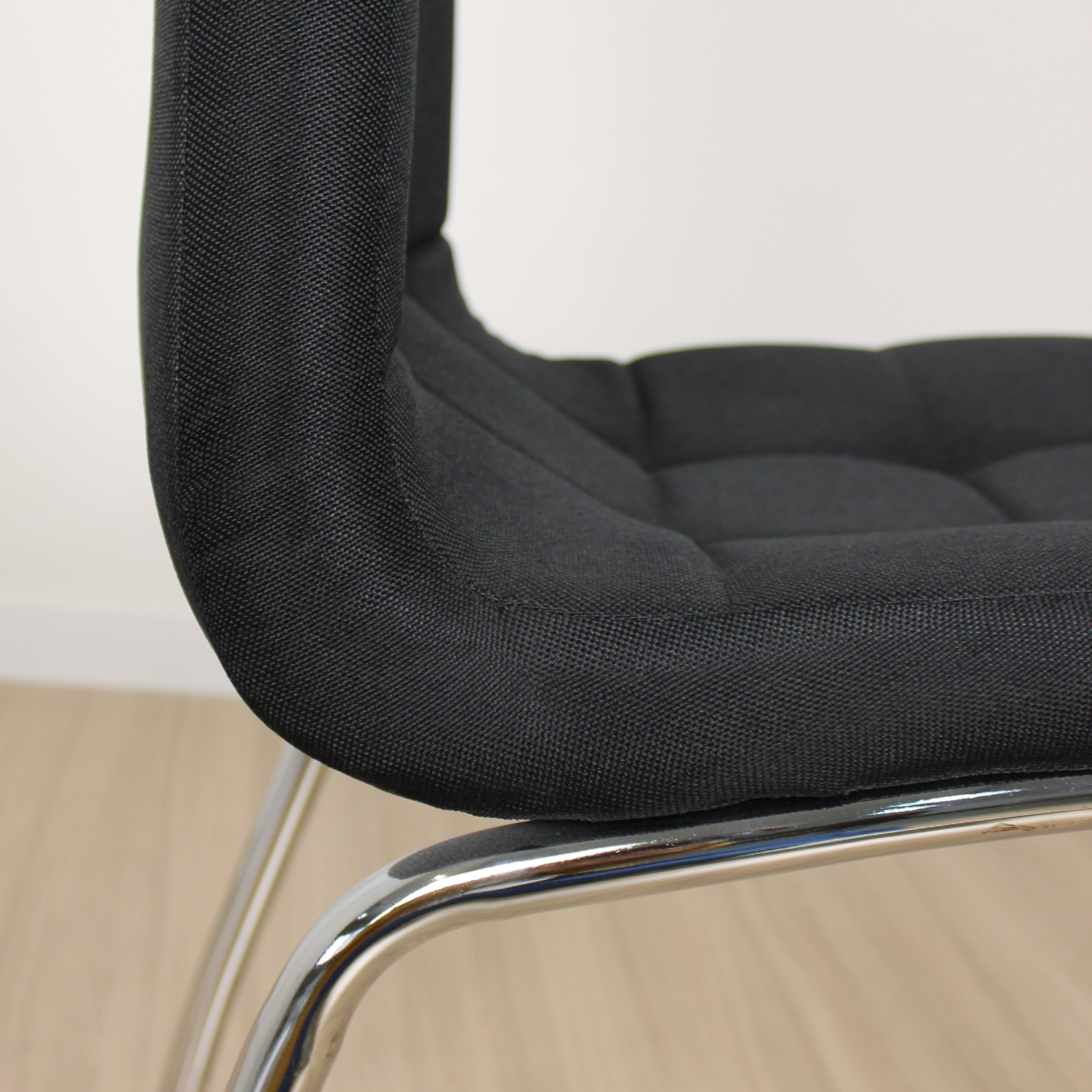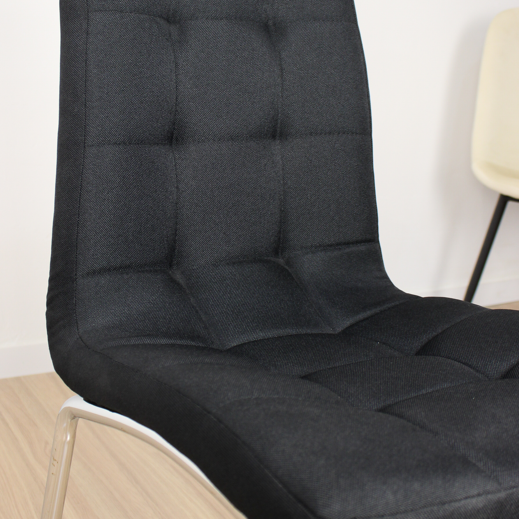Silla de estructura metálica cromada con asiento tapizado en lino y relleno acolchado de primera calidad. Super resistentes.