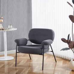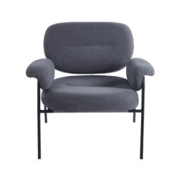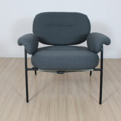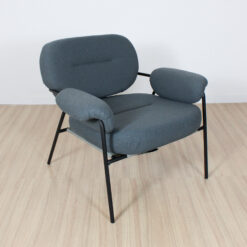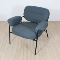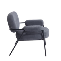 Sillón de diseño, modelo Bollo. Tapizado en tela boucle de rulo corto, con estructura metálica.