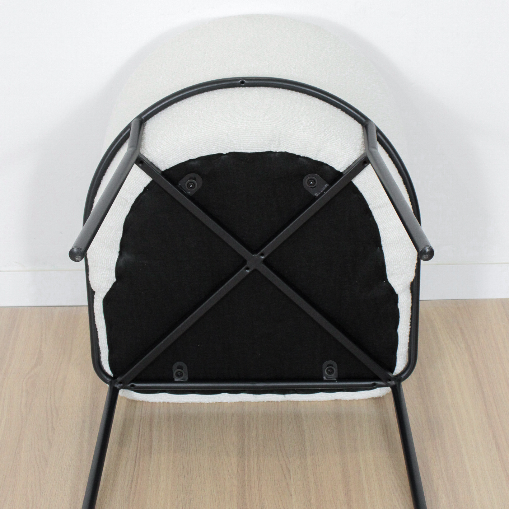 Silla / sillon de estructura metálica patas de acero con recubrimiento de polvo negro, asiento tapizado en tela boucle antimancha. Super resistentes. sencilla de armar. incluye lo necesario para hacerlo. Articulo importado.
