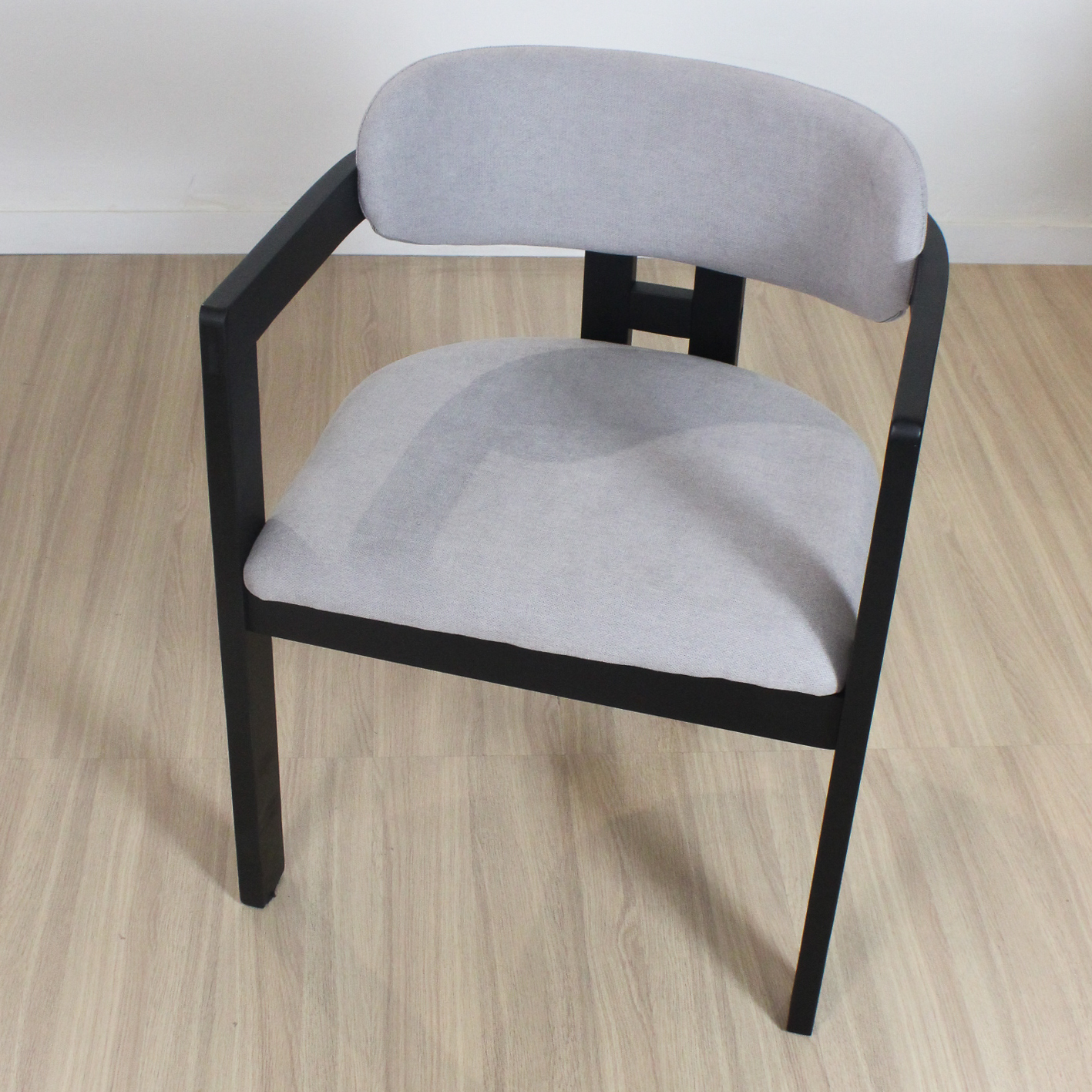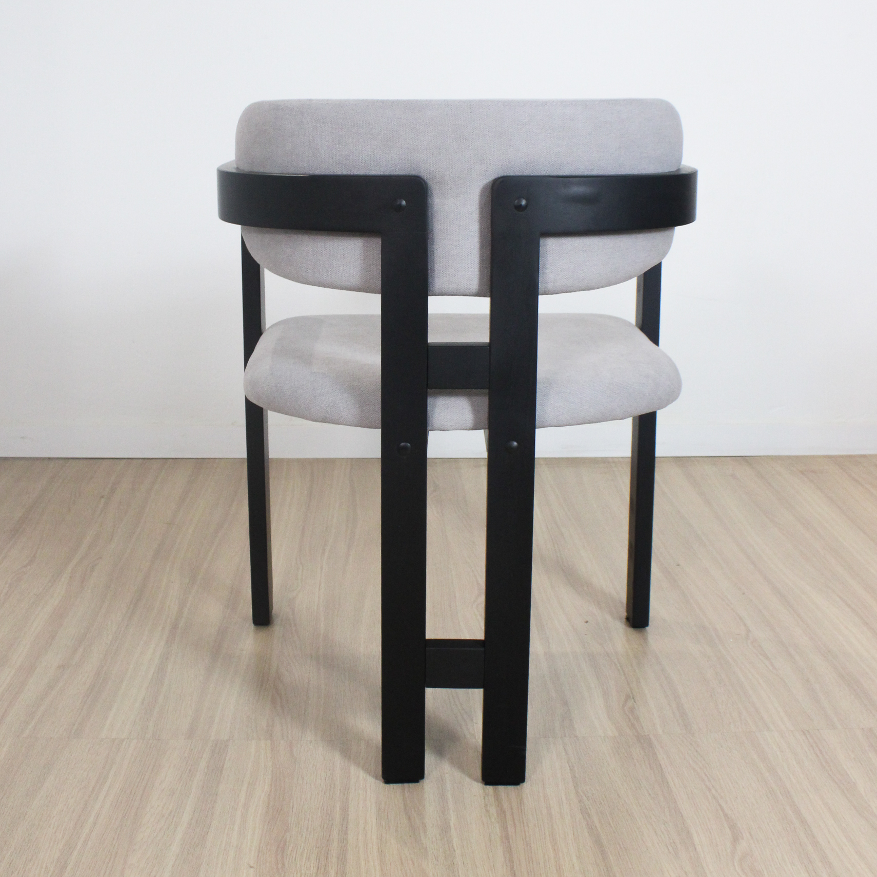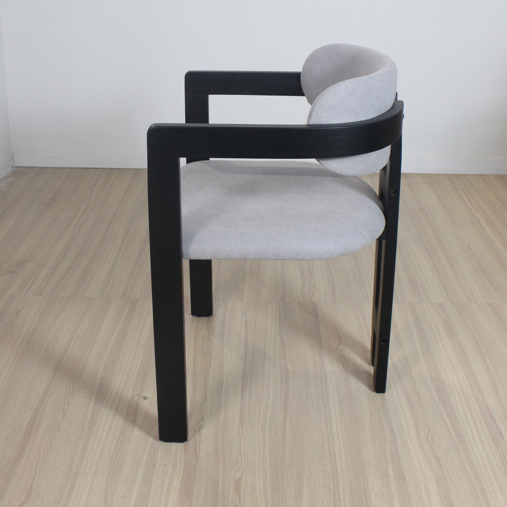 Silla Tempo de estructura de madera de Caucho color negra y tela de lino.