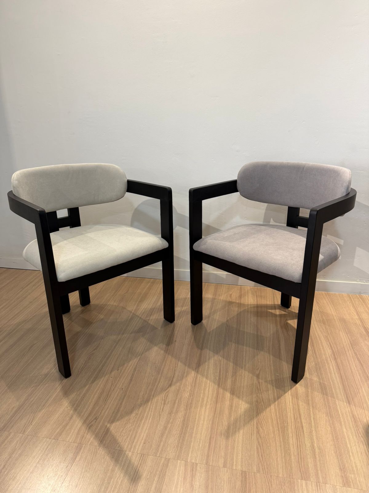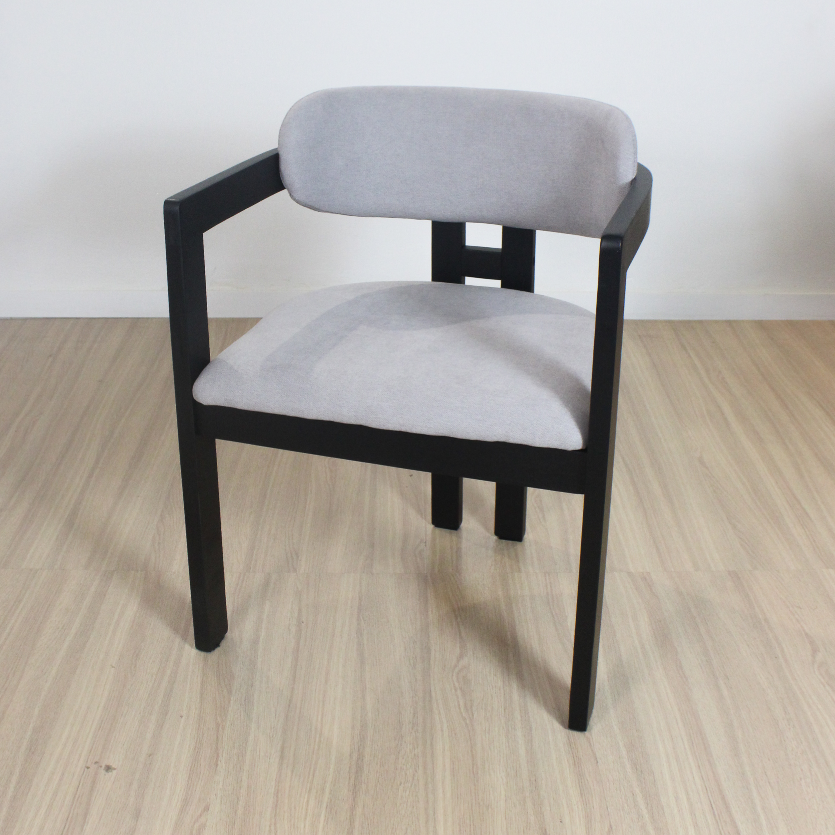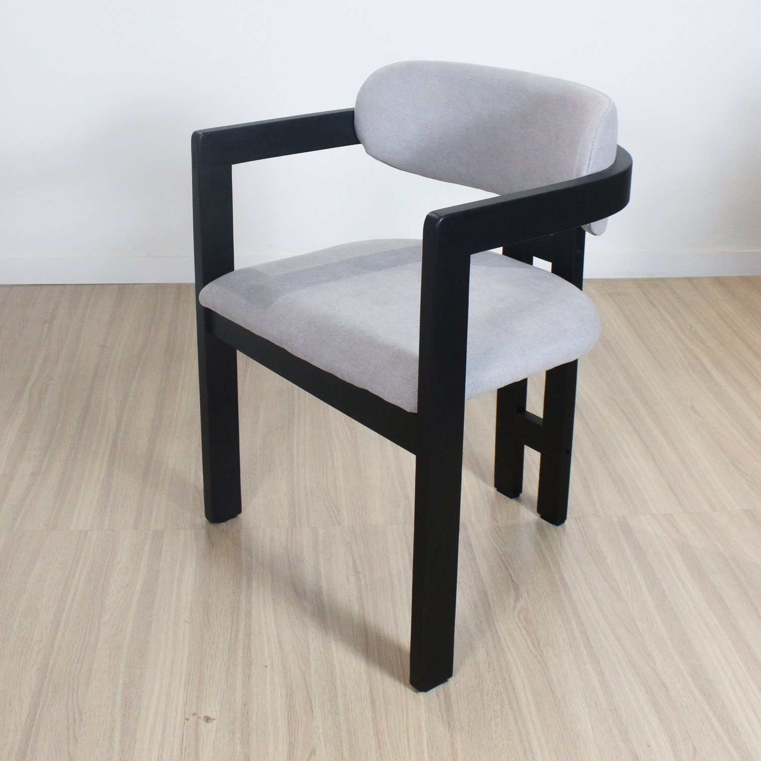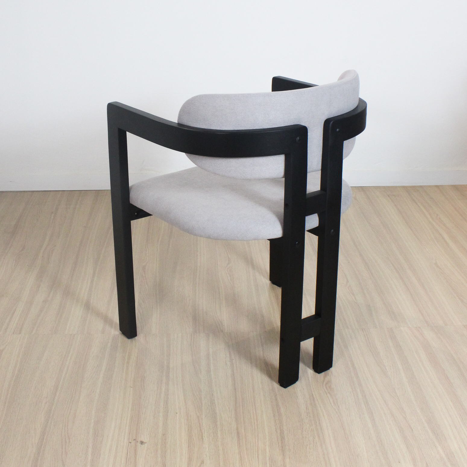 Silla Tempo de estructura de madera de Caucho color negra y tela de lino.