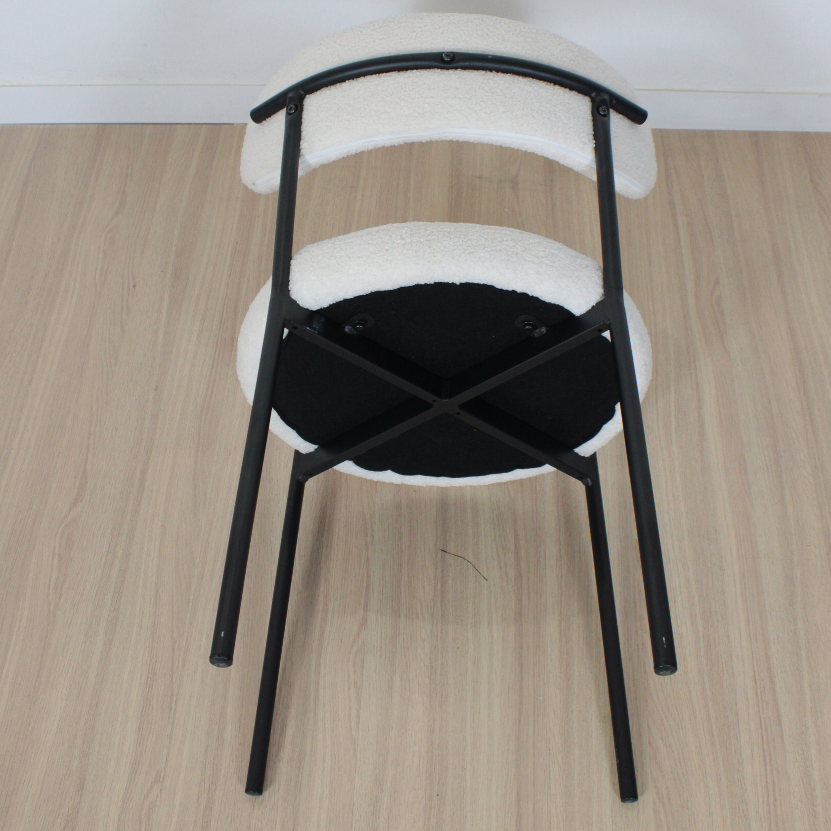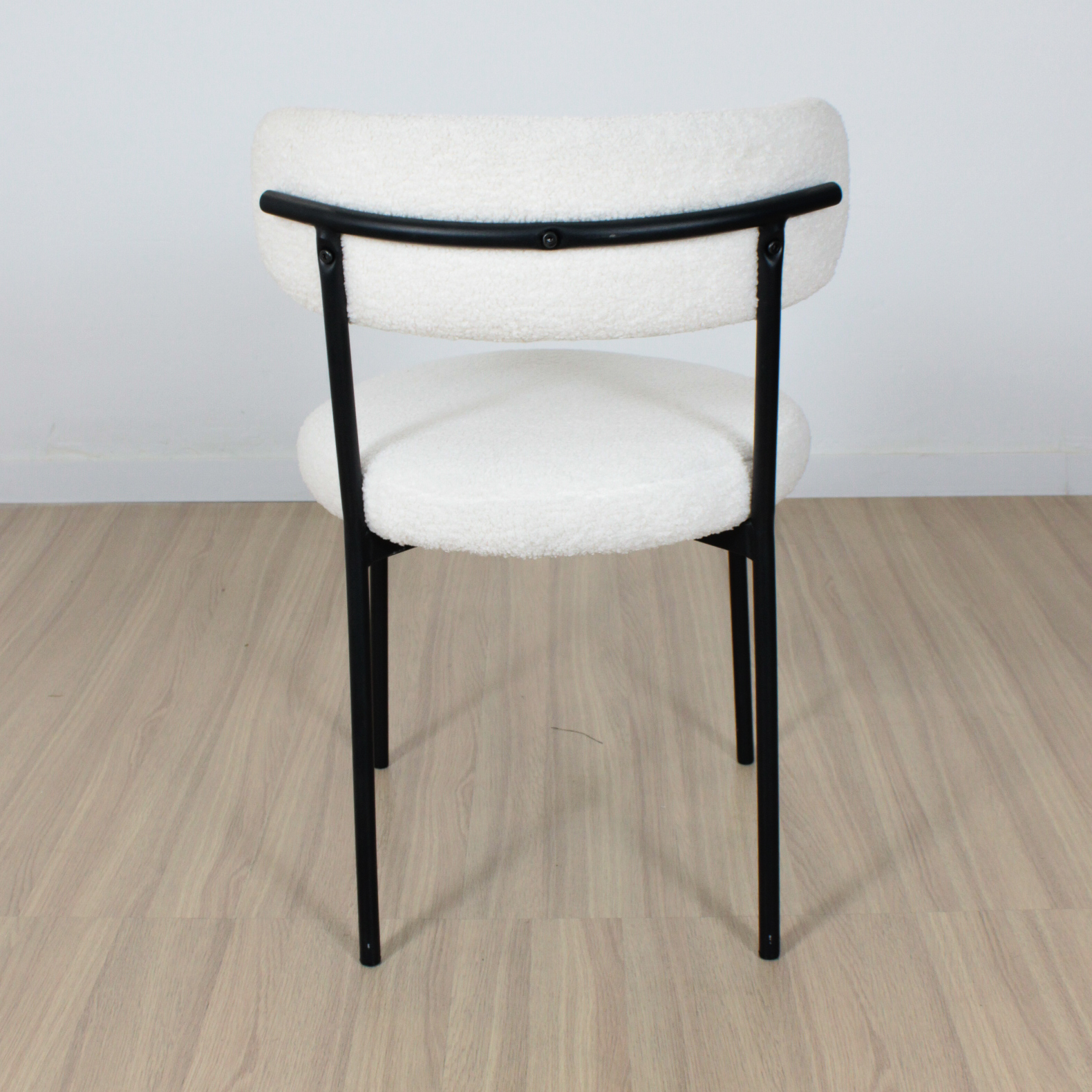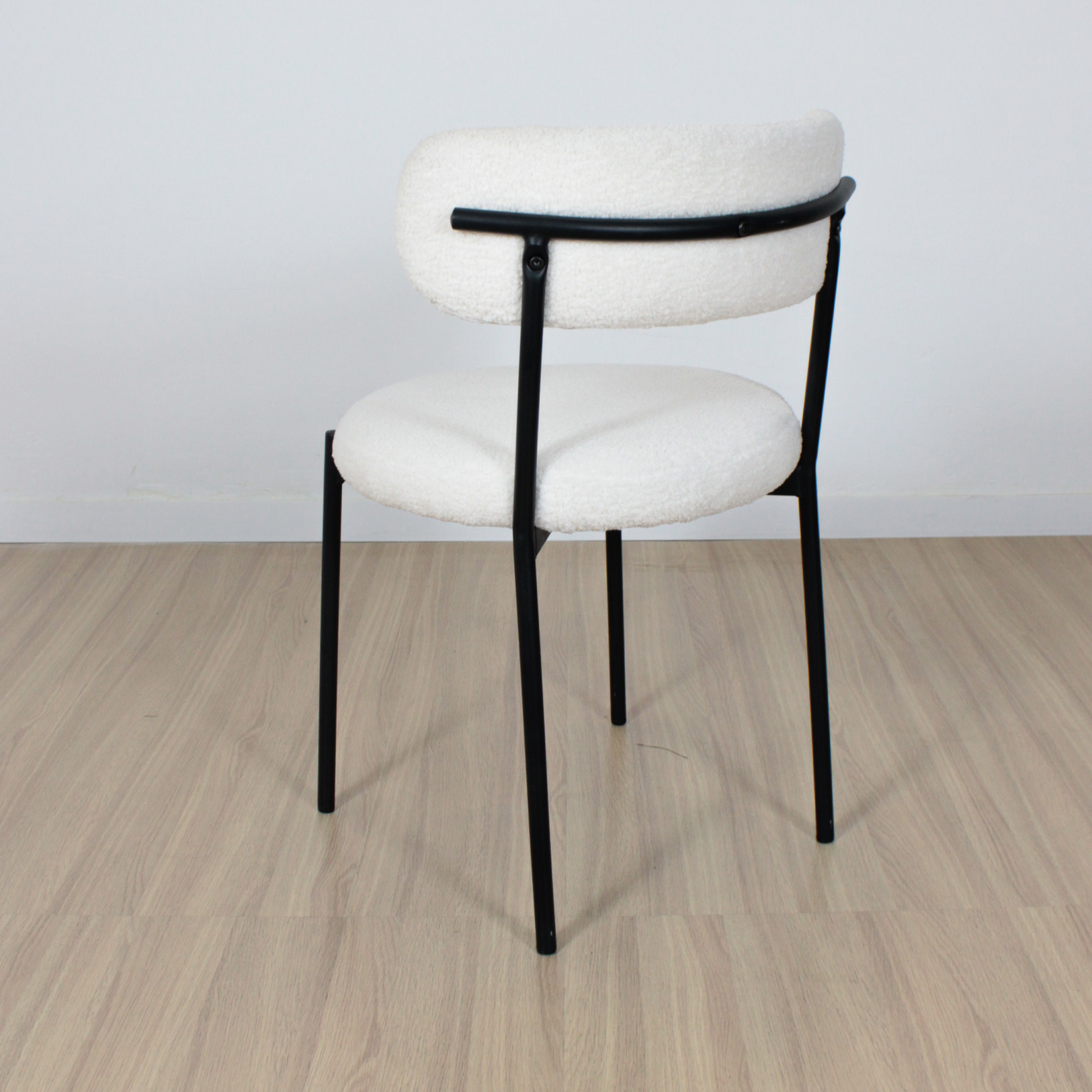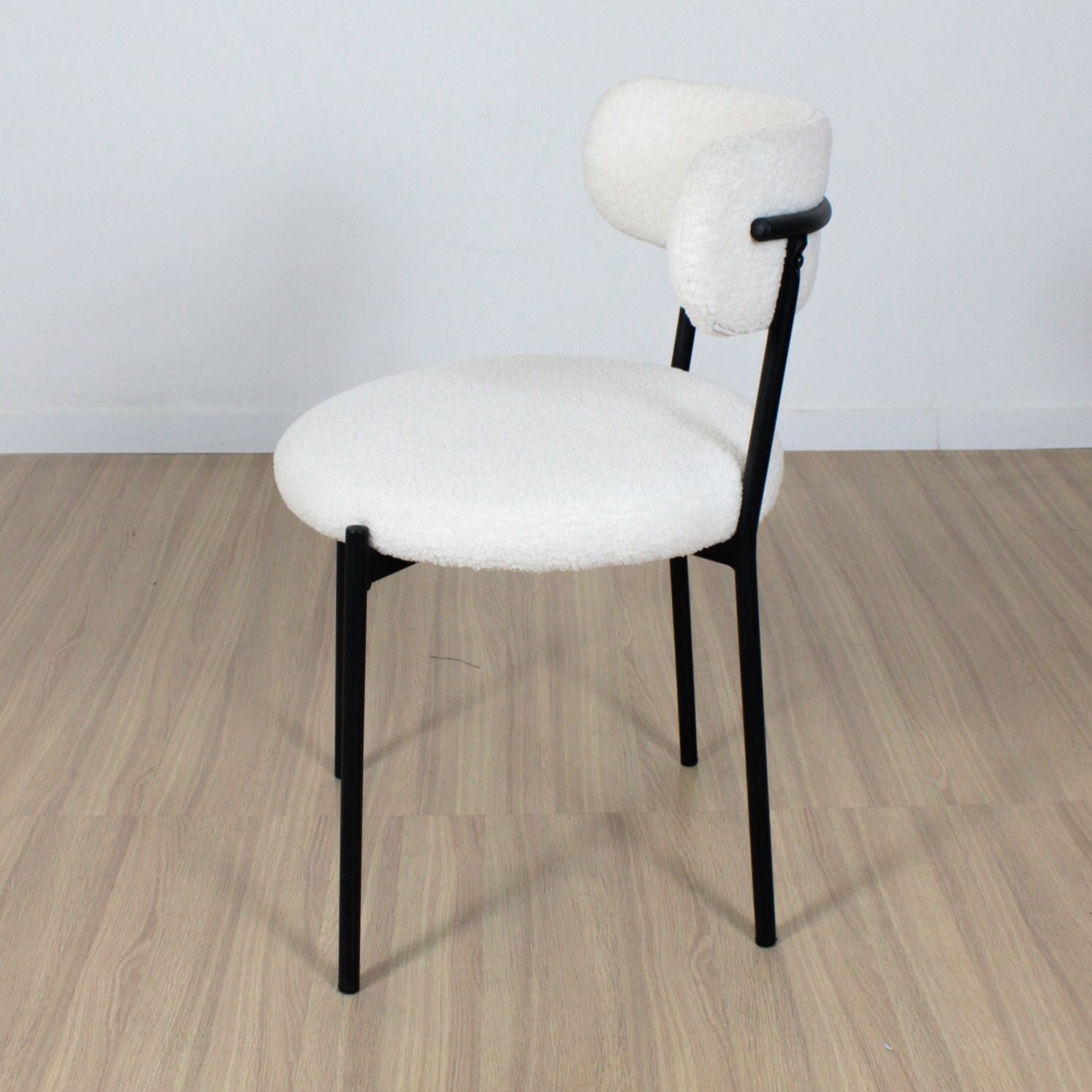 Silla de patas de acero, recubierta de polvo negro, con asiento tapizado en tela boucle.