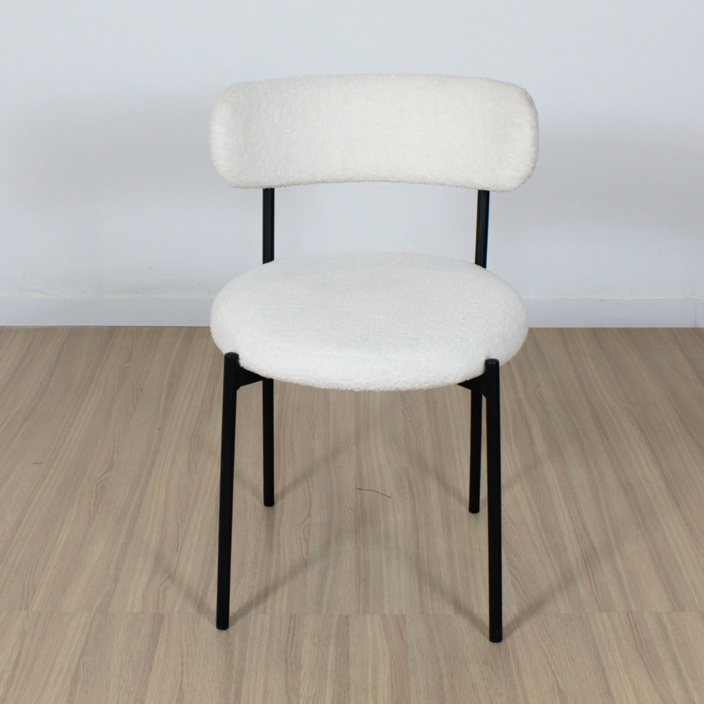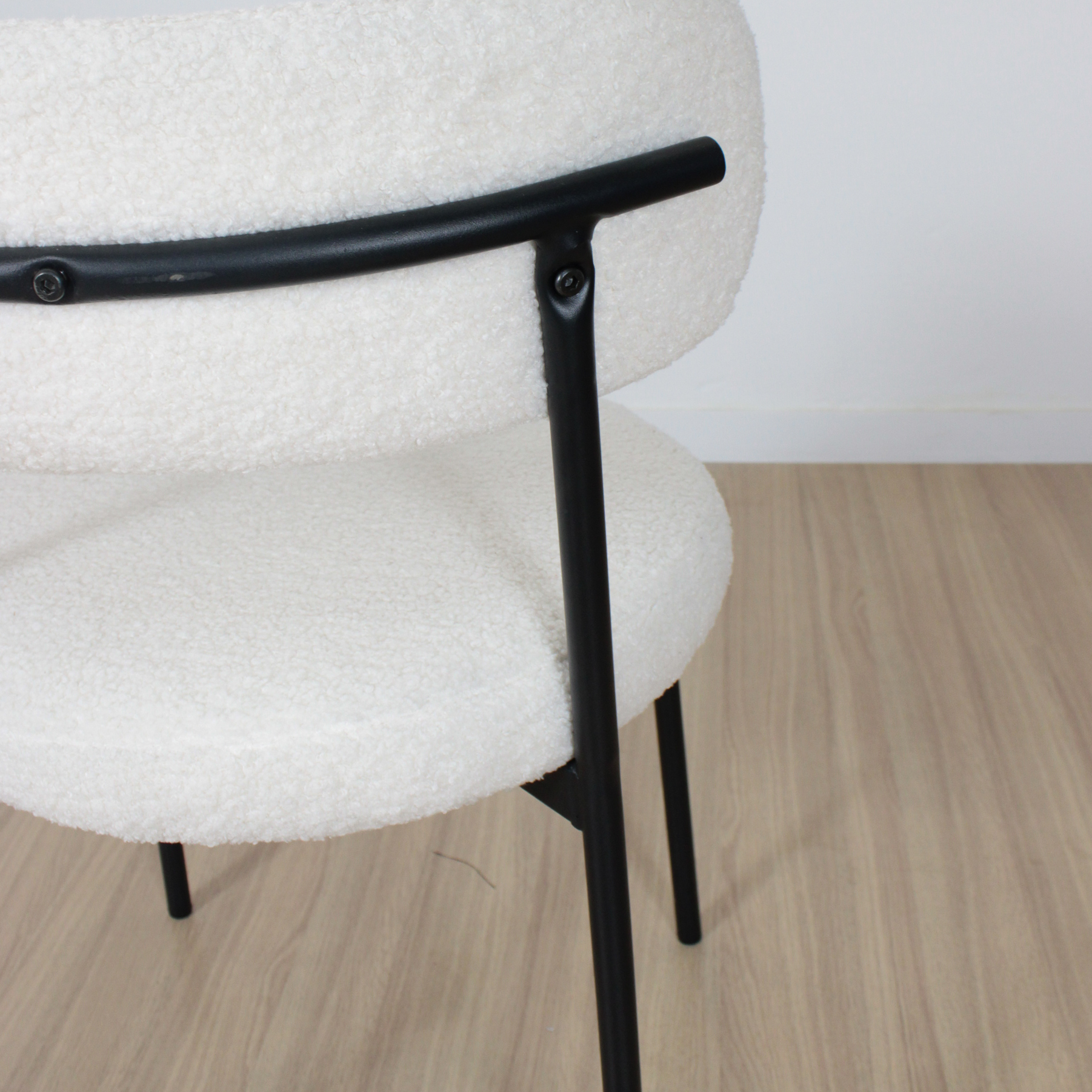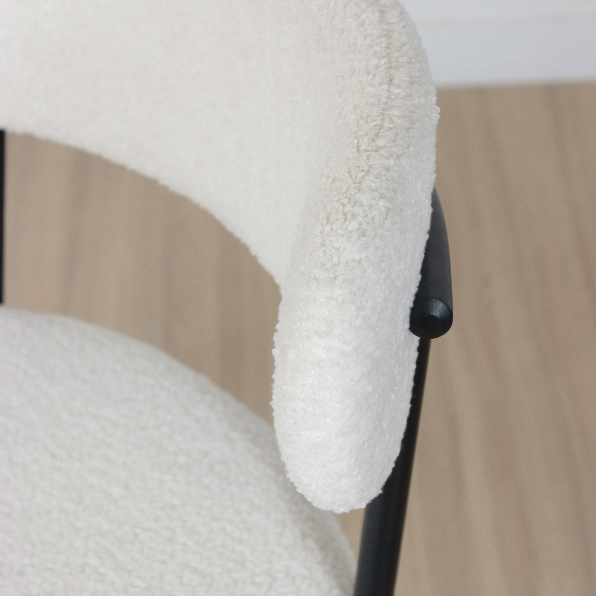 Silla de patas de acero, recubierta de polvo negro, con asiento tapizado en tela boucle.