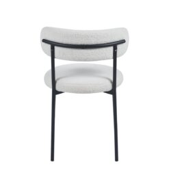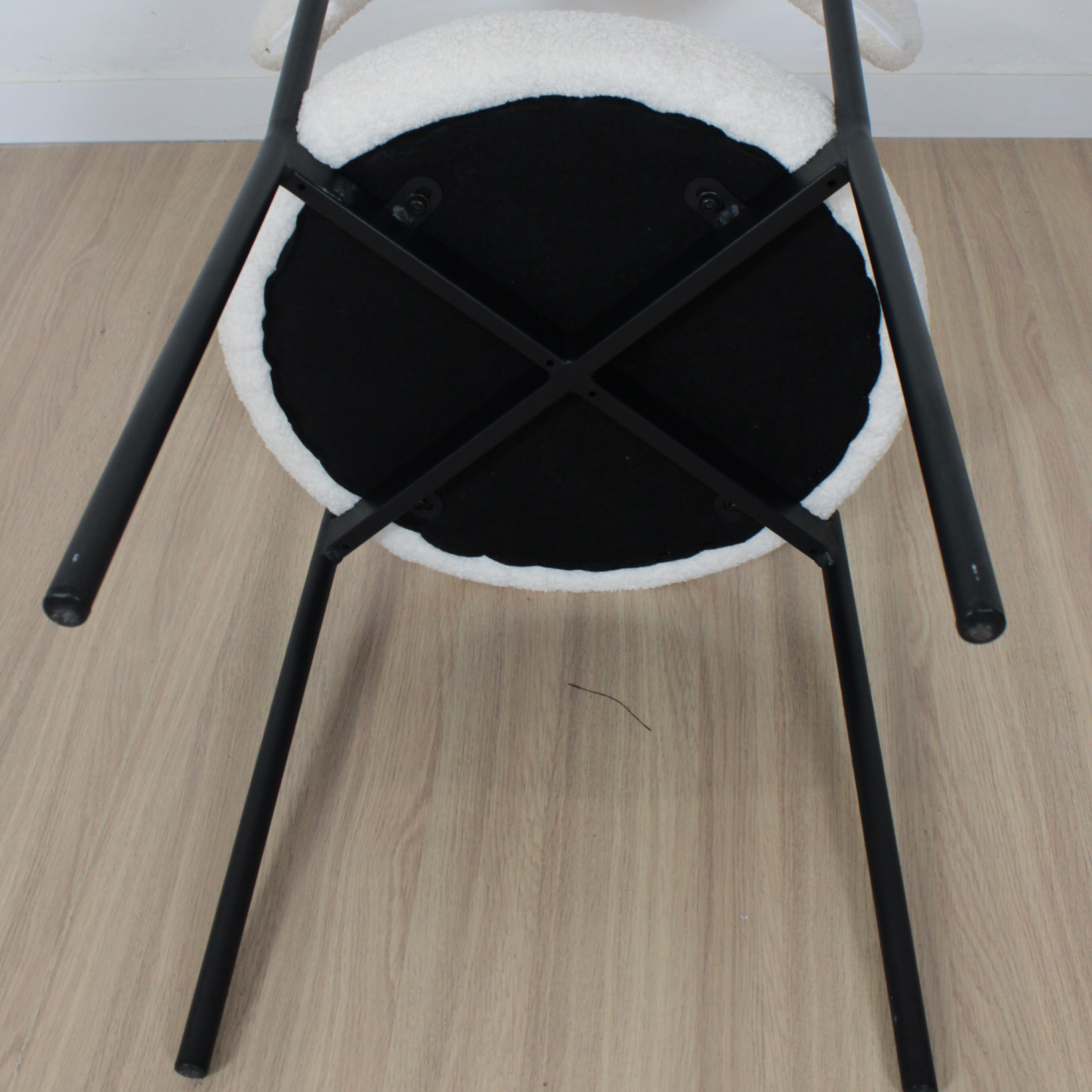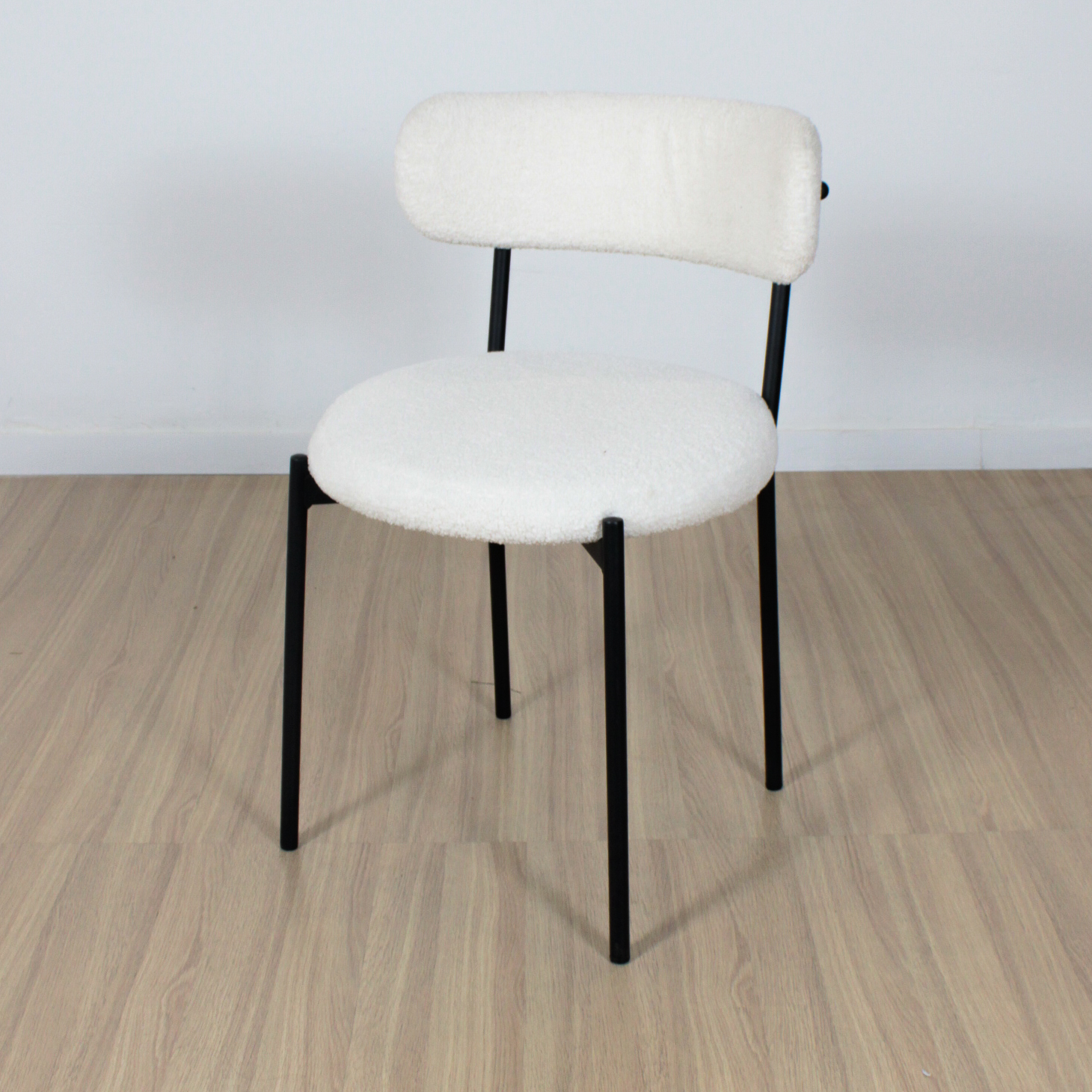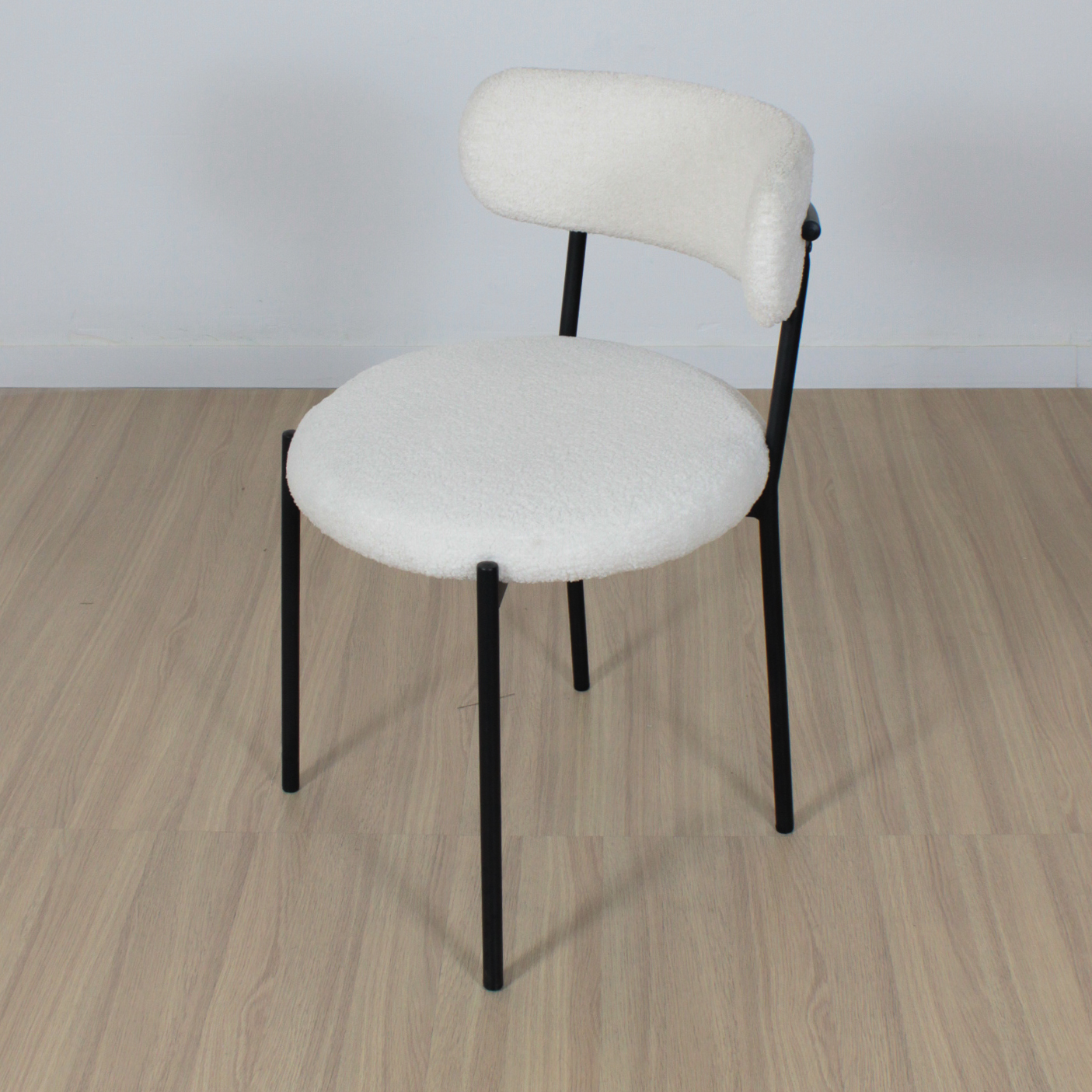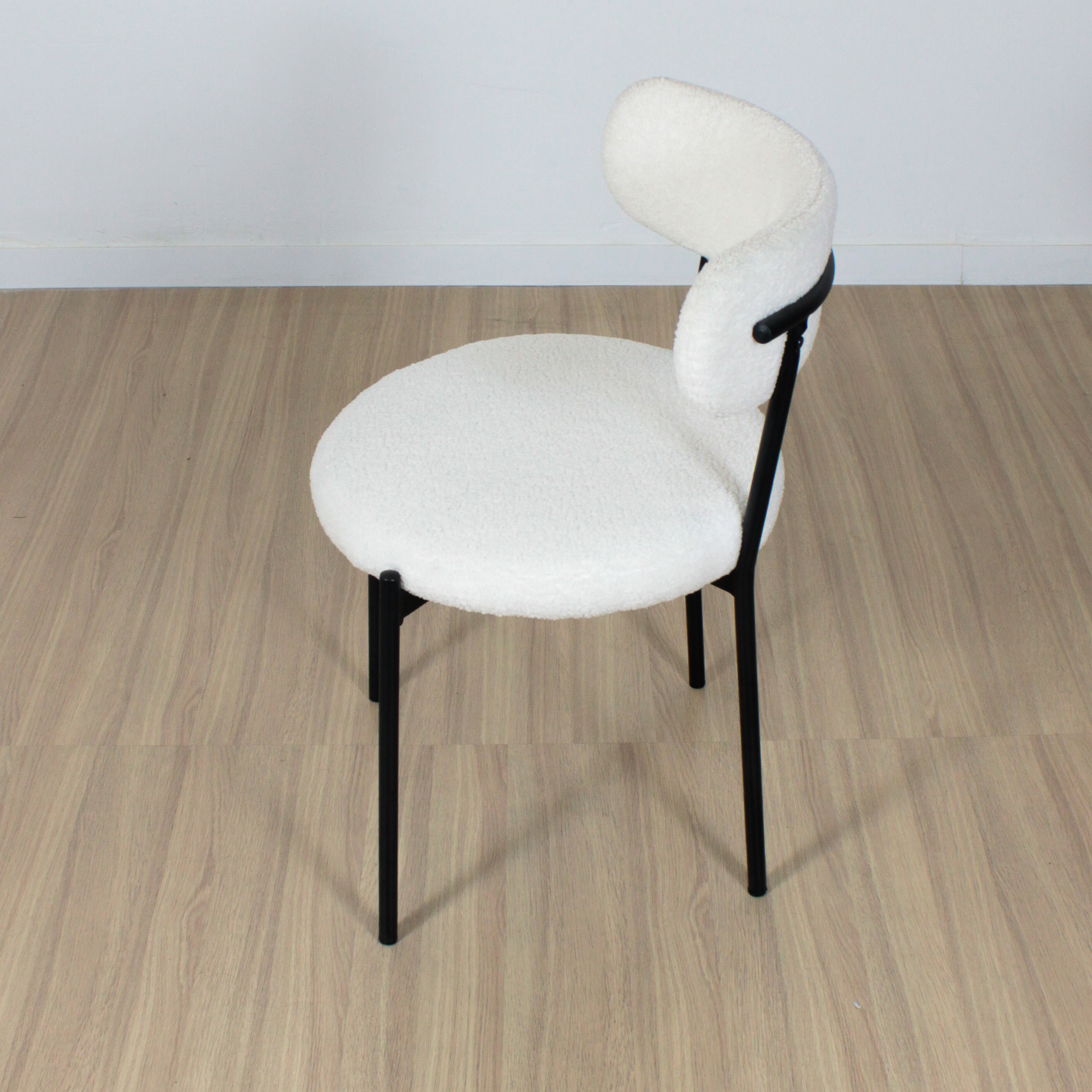 Silla de patas de acero, recubierta de polvo negro, con asiento tapizado en tela boucle.